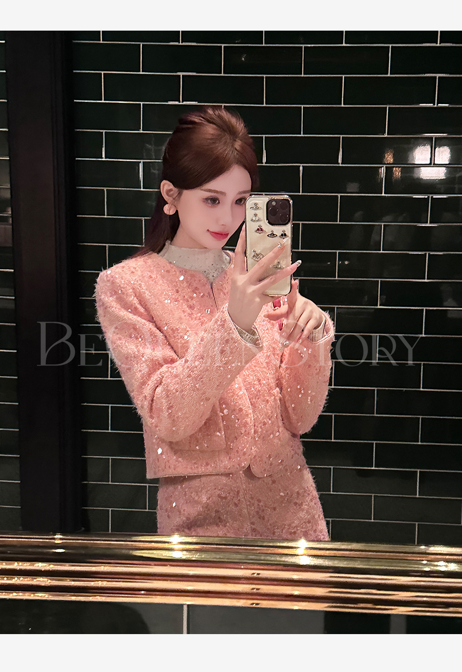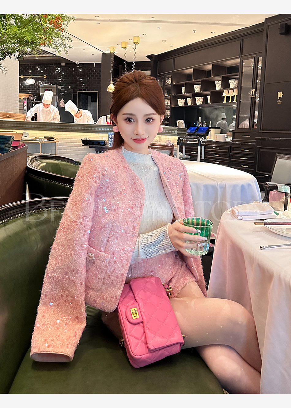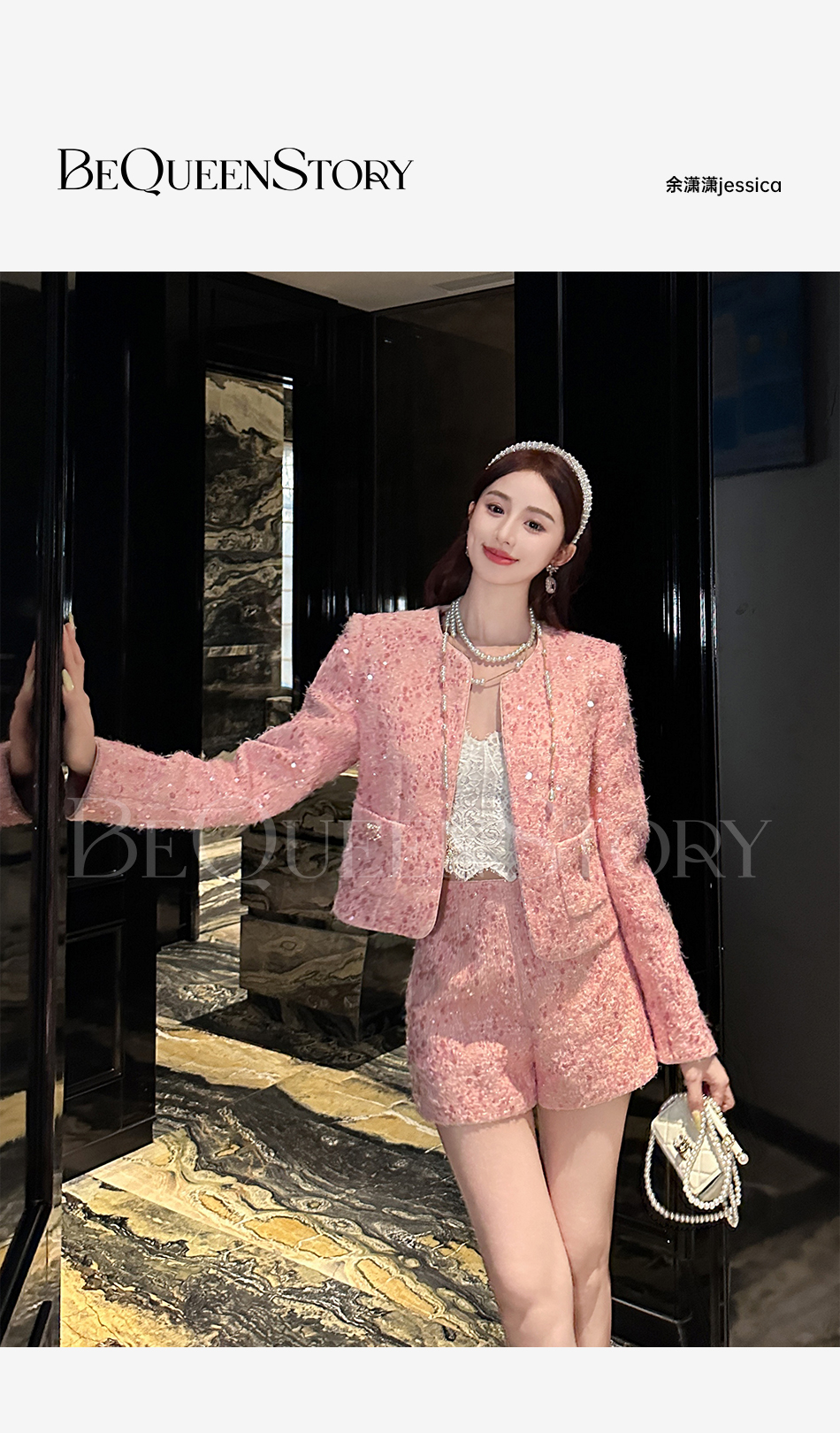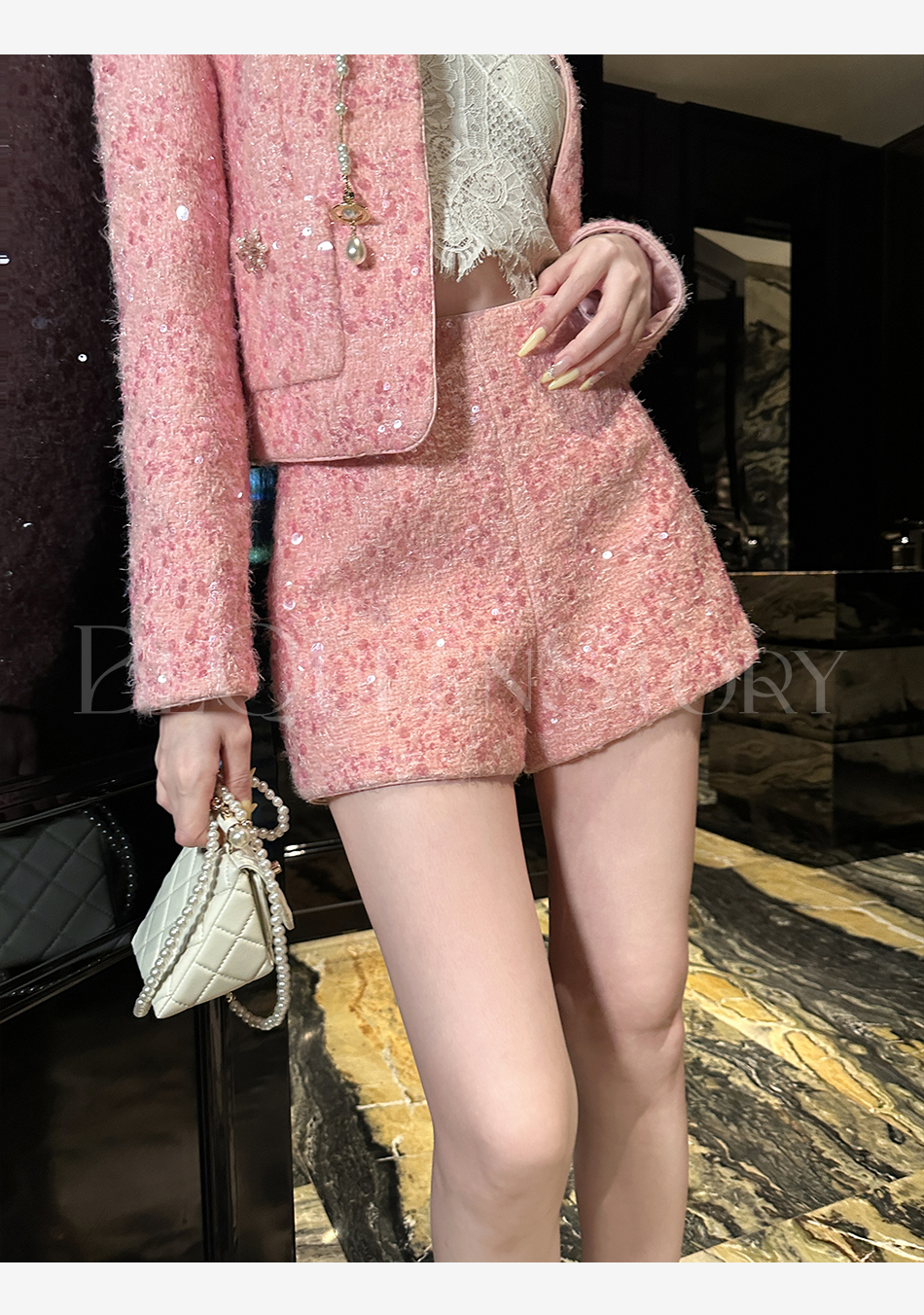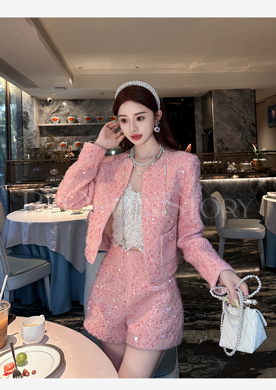 【国庆福利,不退不换】【珊瑚银河】轻奢法式时尚休闲亮片小香风外套&小A字短裤秋冬