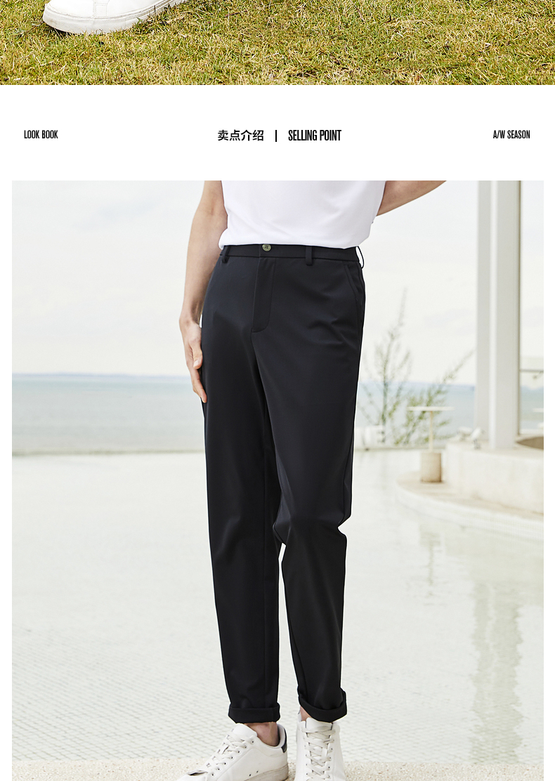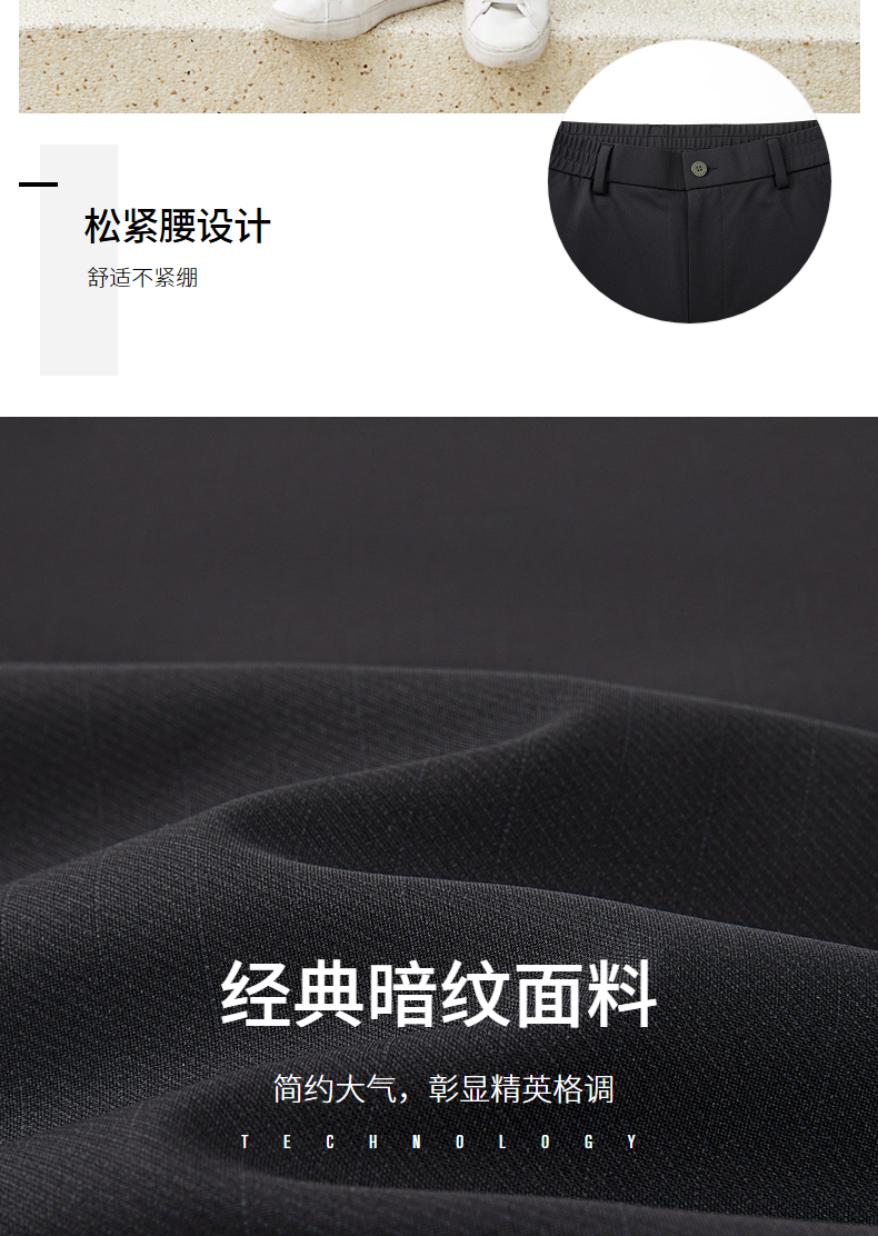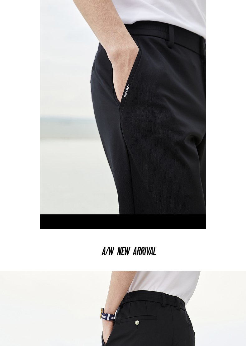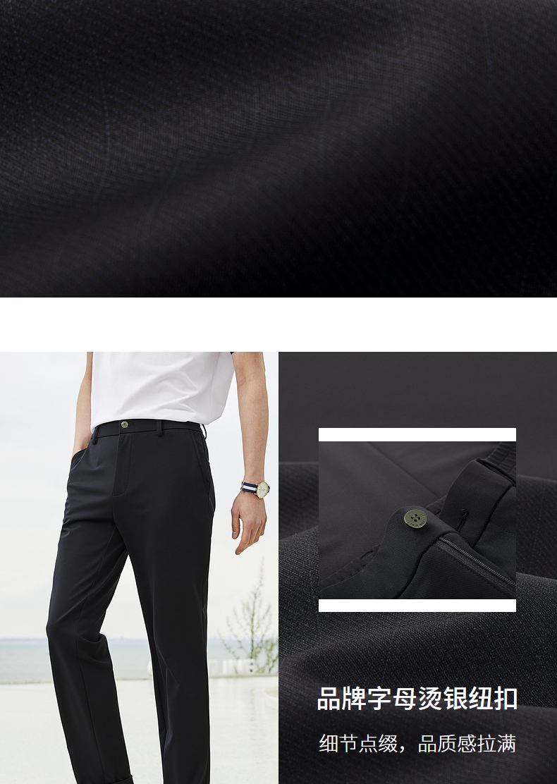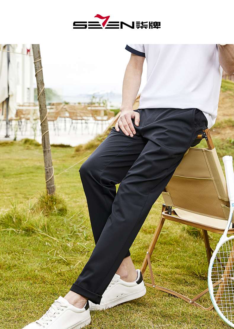 柒牌休闲裤男士春夏新款运动松紧腰中青年暗纹条纹直筒长裤子 124H70170