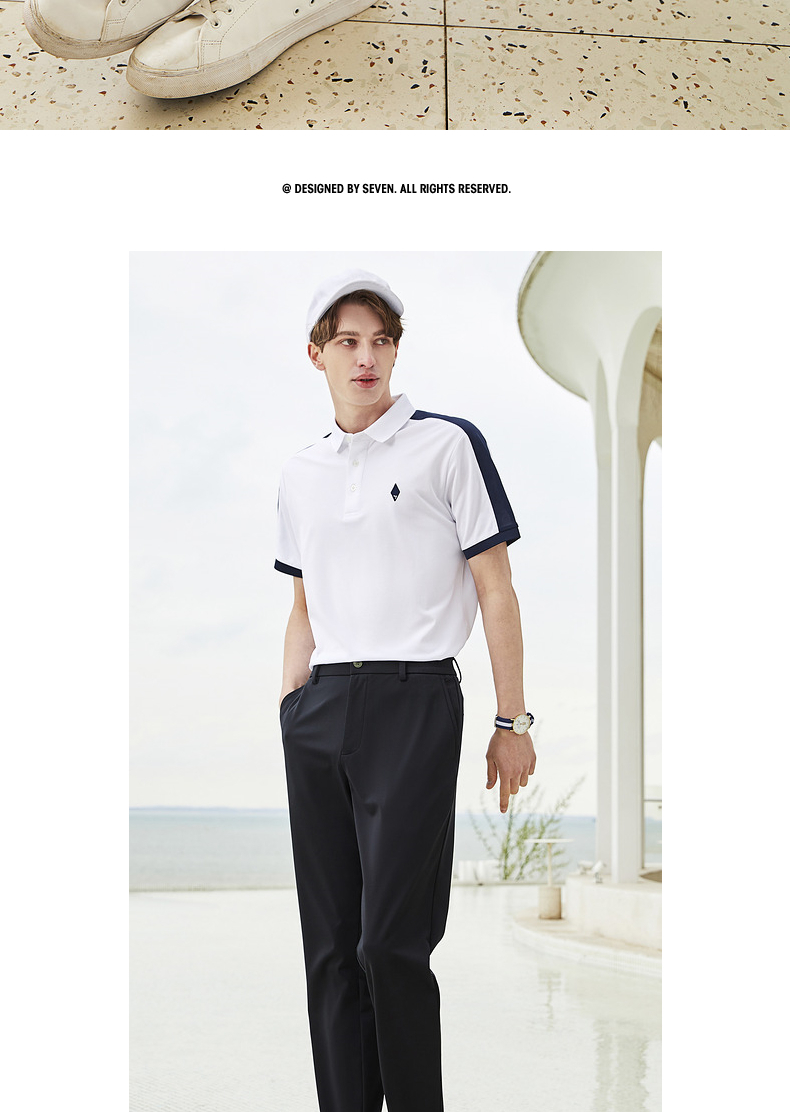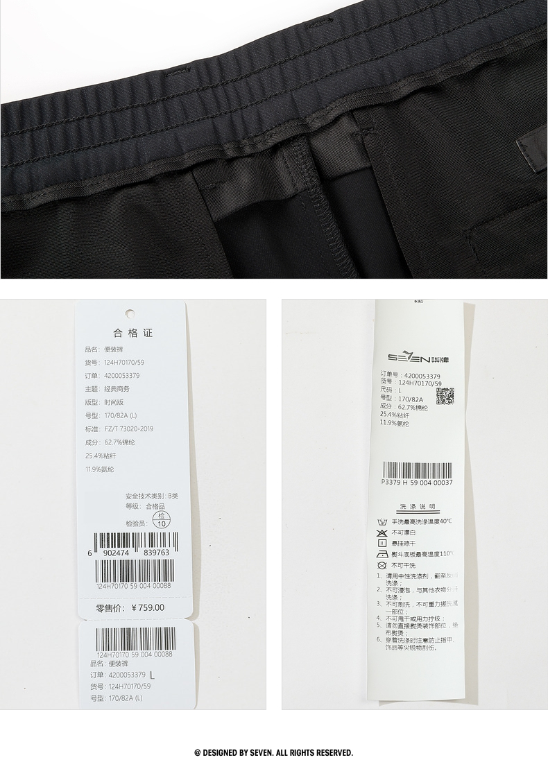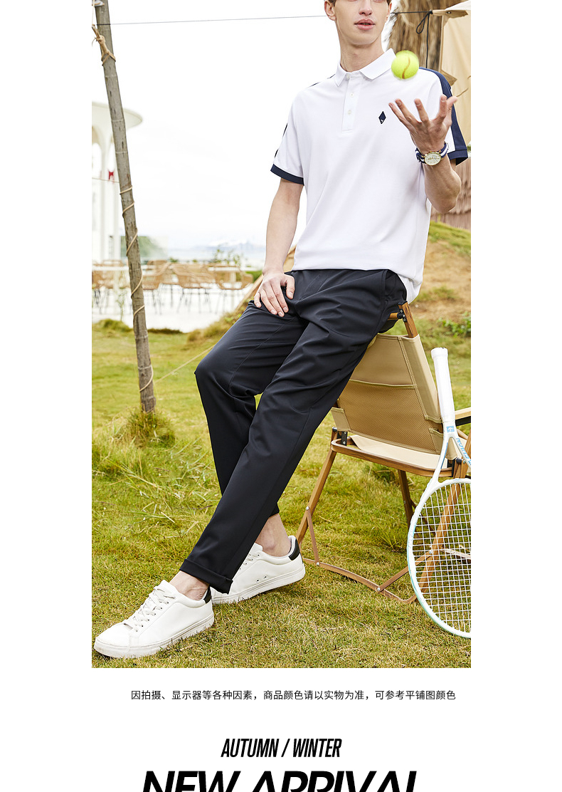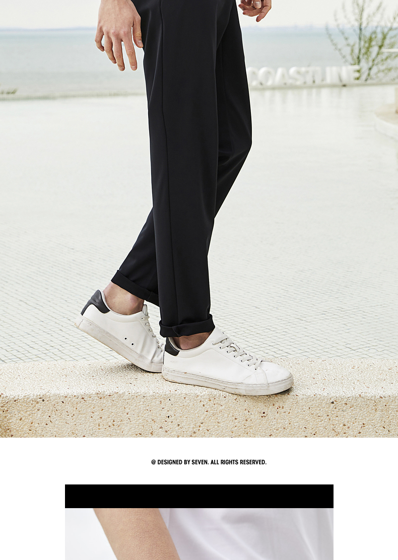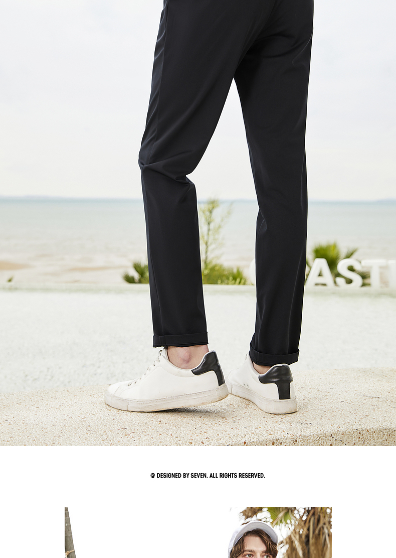 柒牌休闲裤男士春夏新款运动松紧腰中青年暗纹条纹直筒长裤子 124H70170