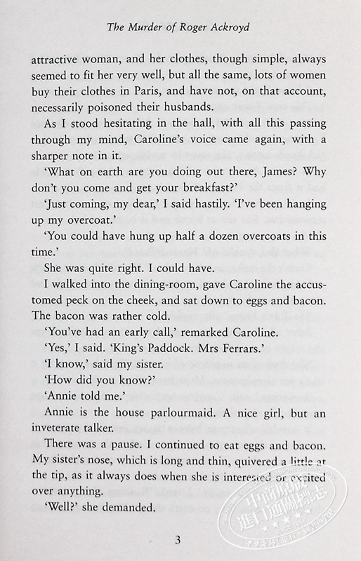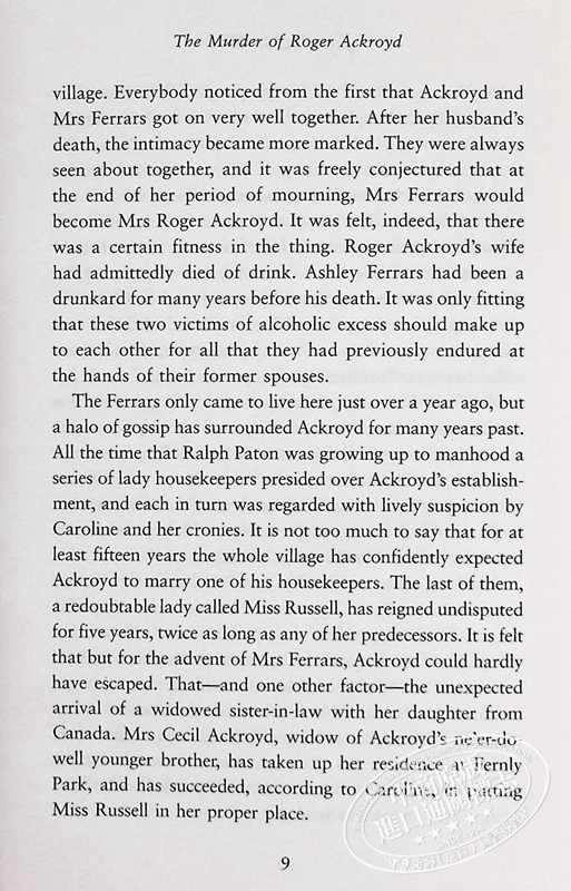 阿加莎系列 罗杰疑案 波洛 Poirot The Murder of Roger Ackroyd 英文原版 Agatha Christie
