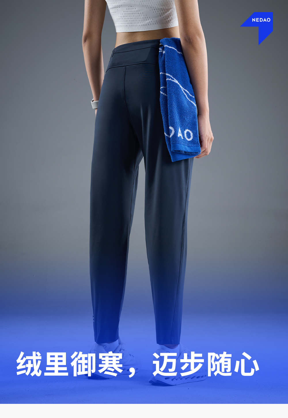 NEDAO内道新品拉毛保暖高弹跑步长裤3.0女款跑步训练宽松腰包跑步长裤