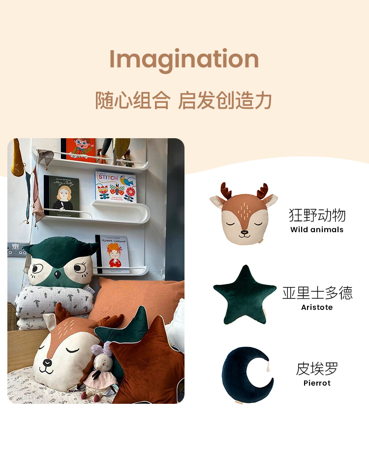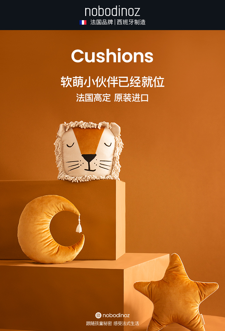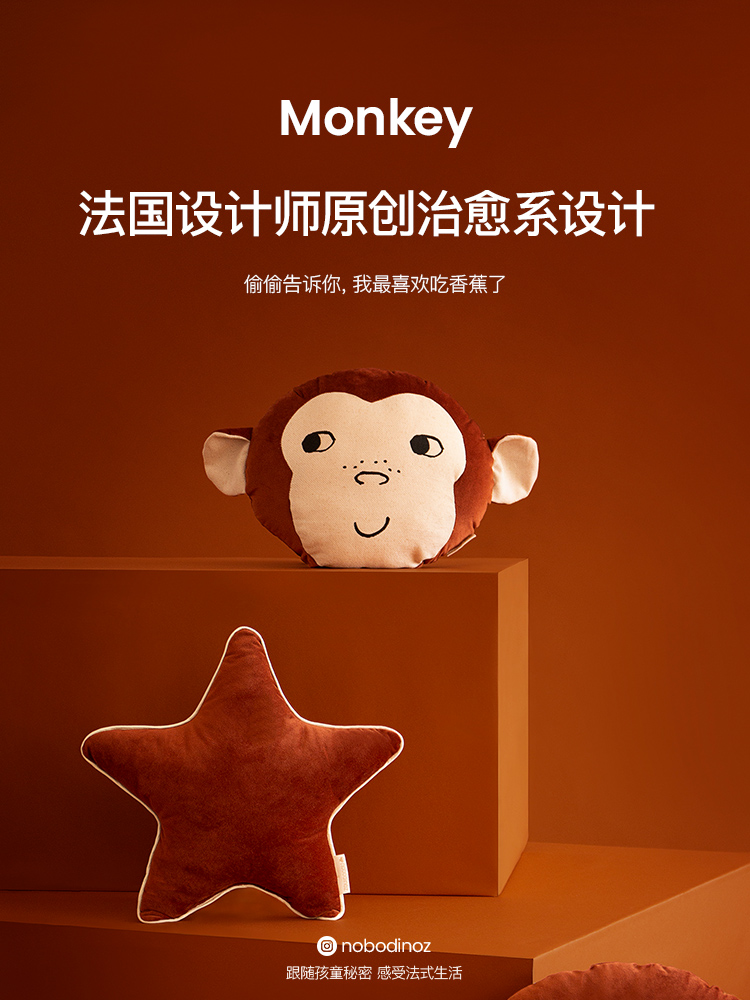法国 Nobodinoz 淘气猴靠垫 35X32X10 棕褐色 N112565