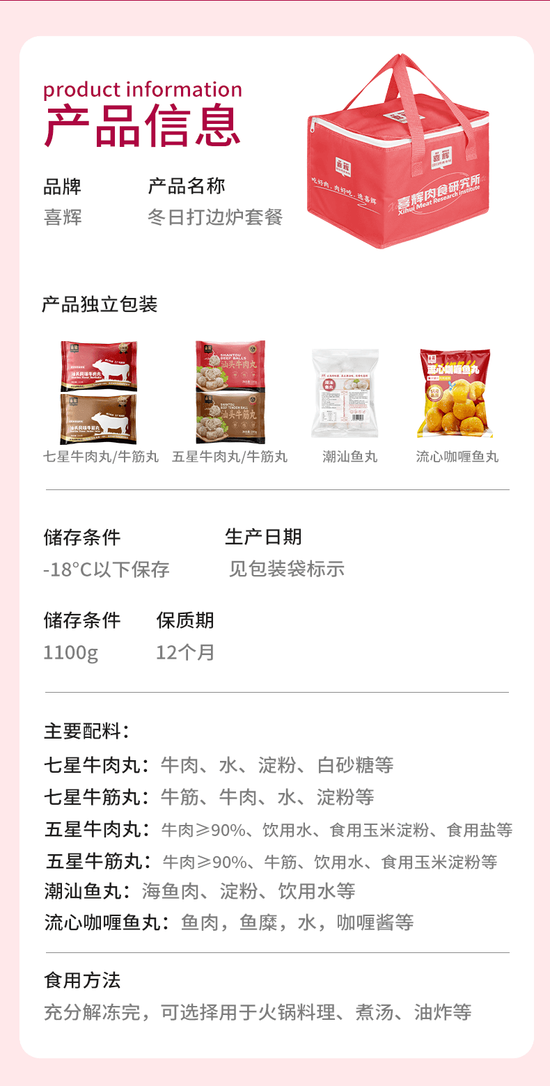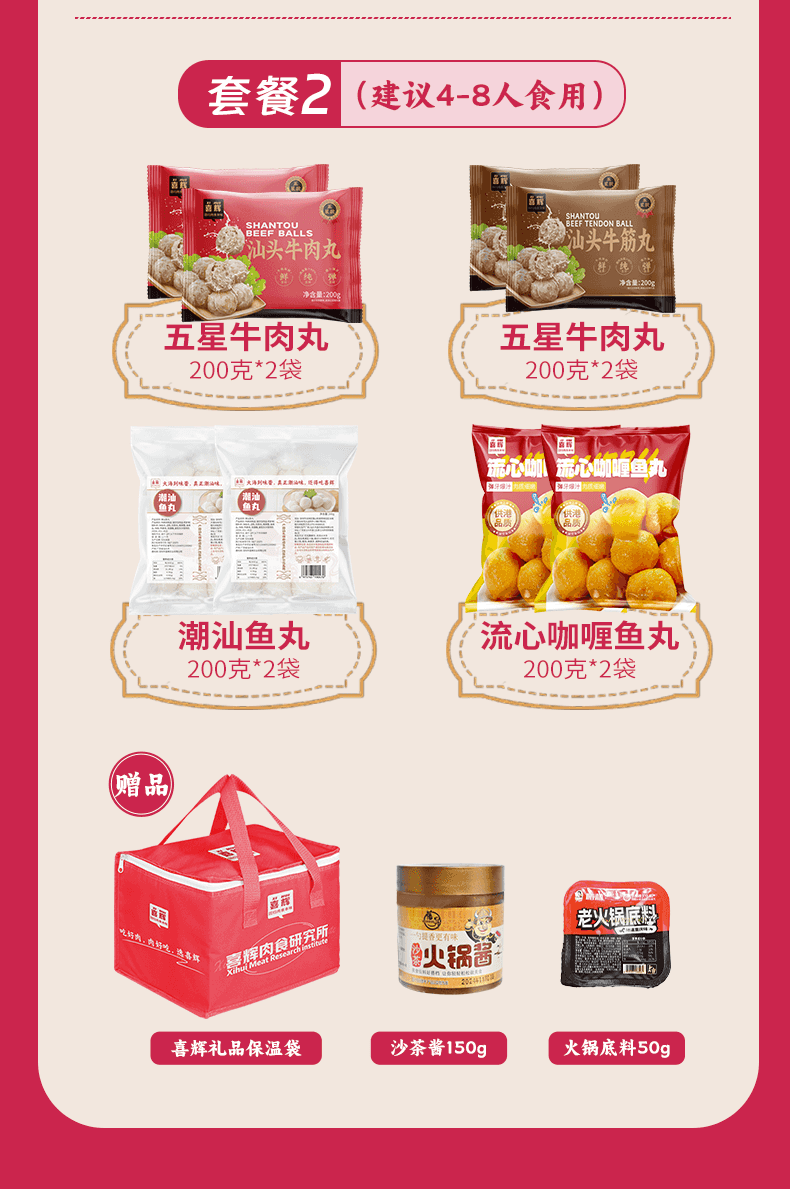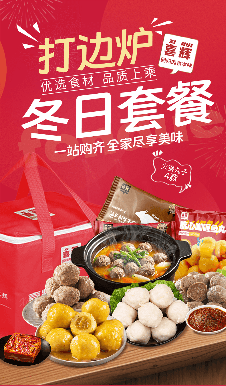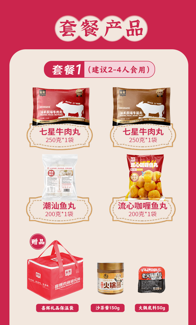 喜辉冬日打边炉套餐 七星牛肉丸牛筋丸潮汕鱼丸咖喱鱼丸沙茶酱火锅底料 多种美味一站购齐全老少皆宜