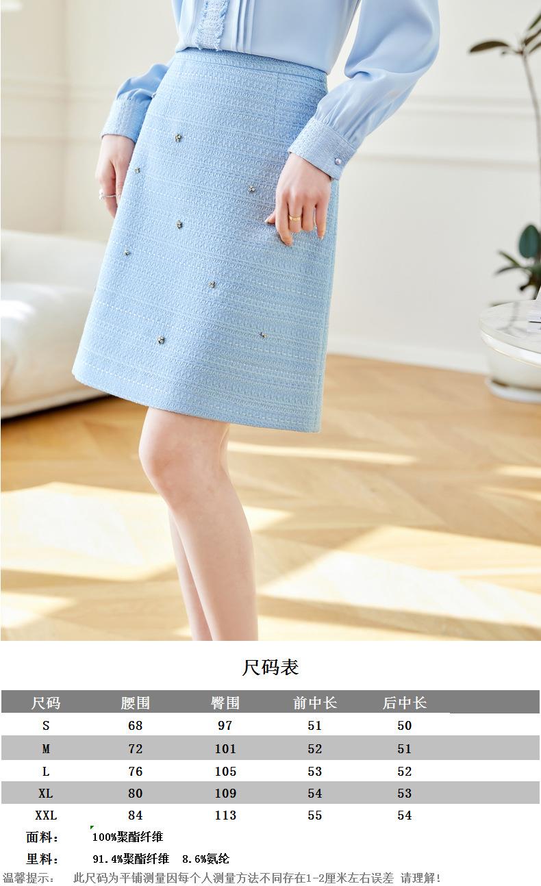 蓝色半身裙女2024春装新款钉钻A字裙高腰显瘦中裙613