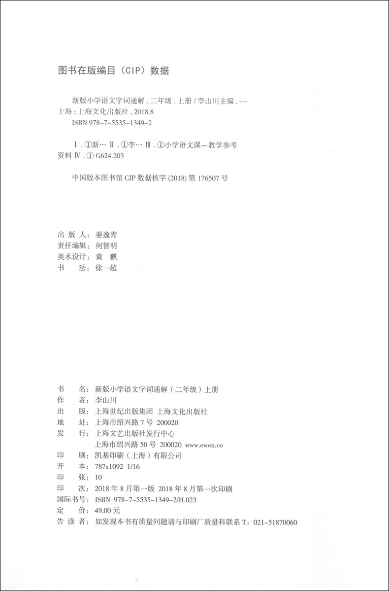 新版小学语文字词通解2年级上册/二年级第一学期李山川著配套部编本语文教材名家音频导读汉字详解汉字百科字词辨析上海文化出版社