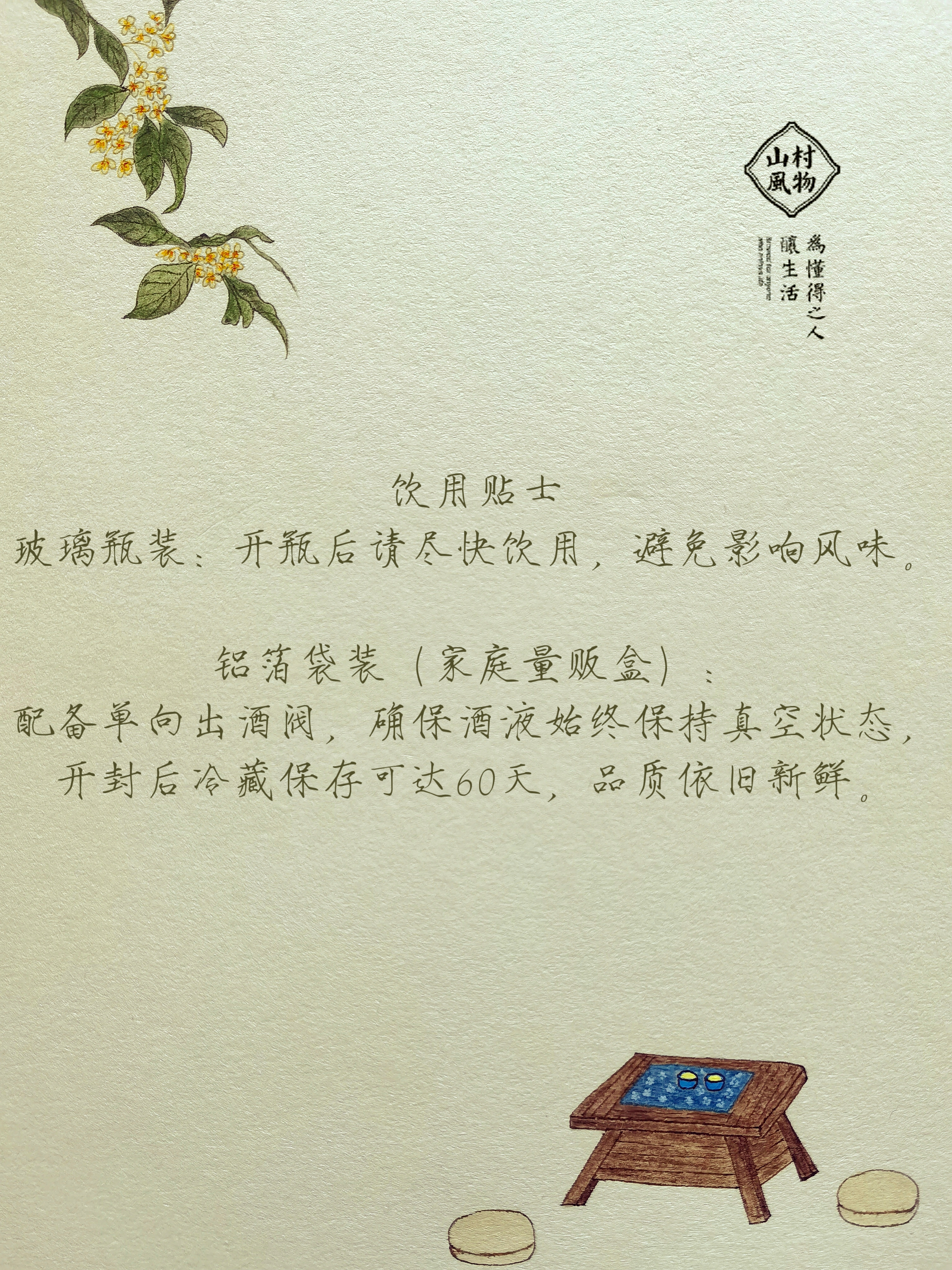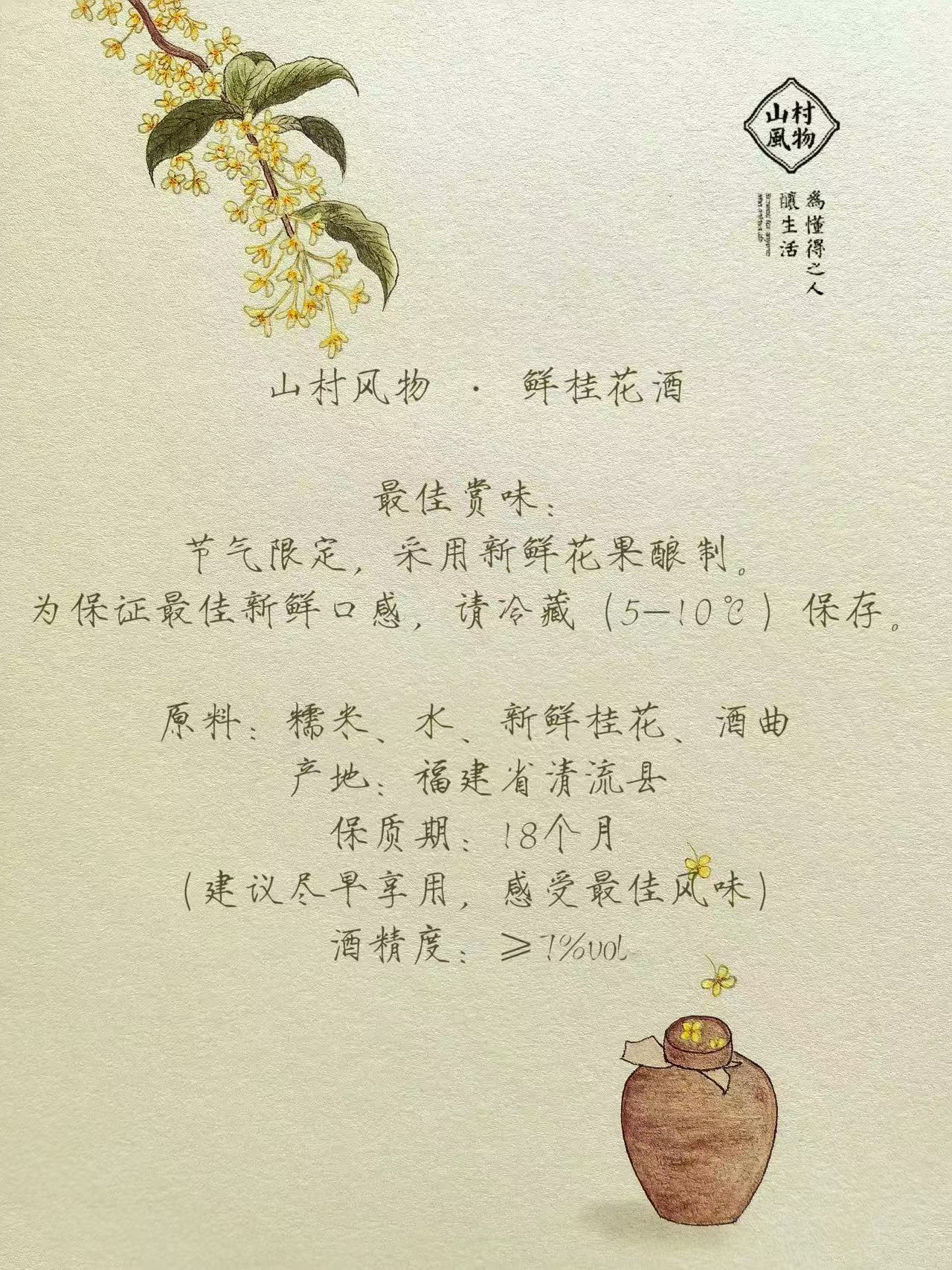 山村风物|鲜桂花酒 铝箔袋装750g 玻璃瓶装350g