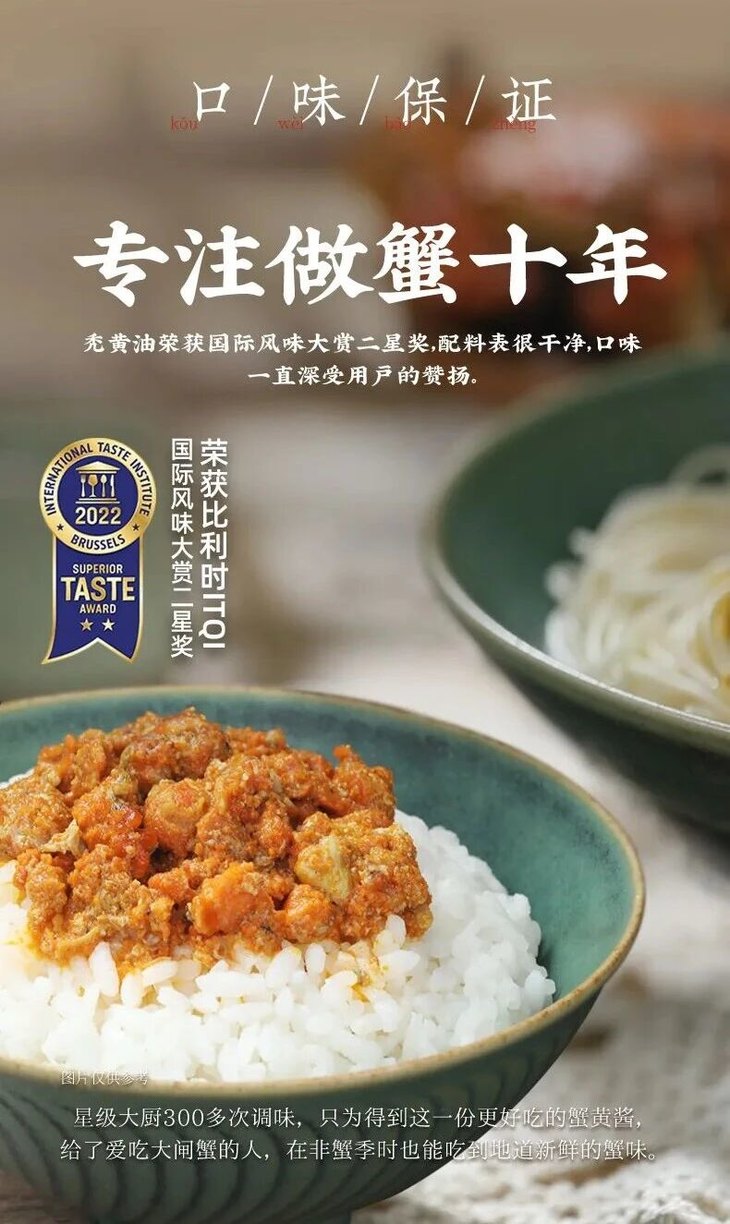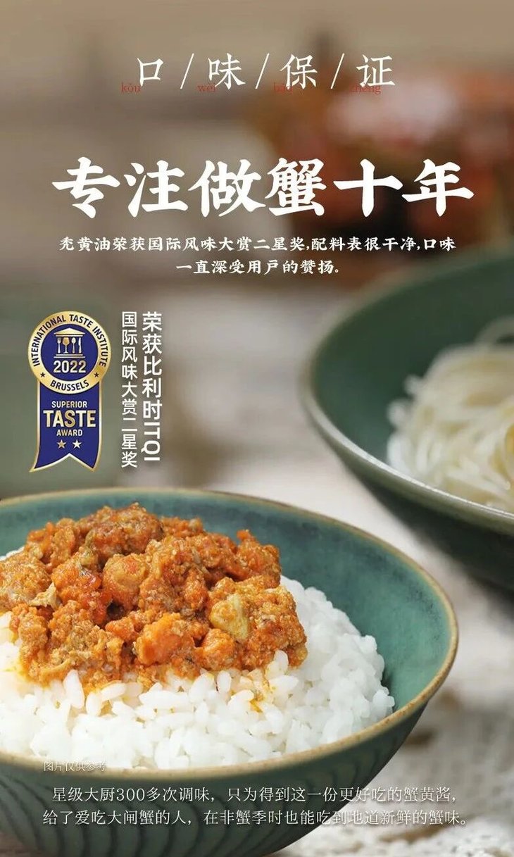 我们新先聚品为大家甄选的“蟹黄金”品牌——“不等”蟹礼,专注做蟹10年,不仅邀请名厨监制配方,更是拿下了全球三大美食大赛,比利时布鲁塞尔ITQI国际风味大赏的2星大奖,可以说是“秃黄油”届中的“一流国际蟹”了!