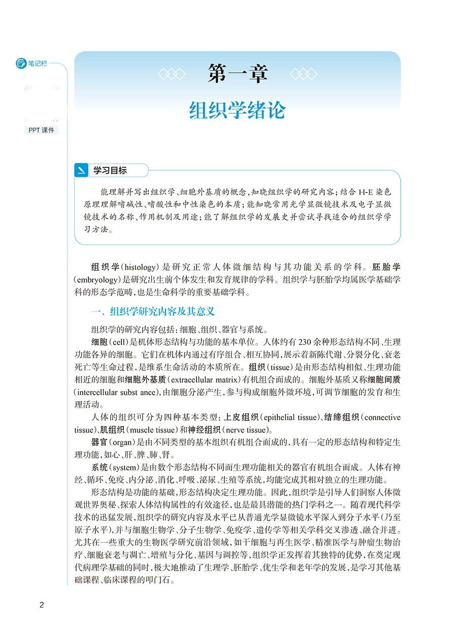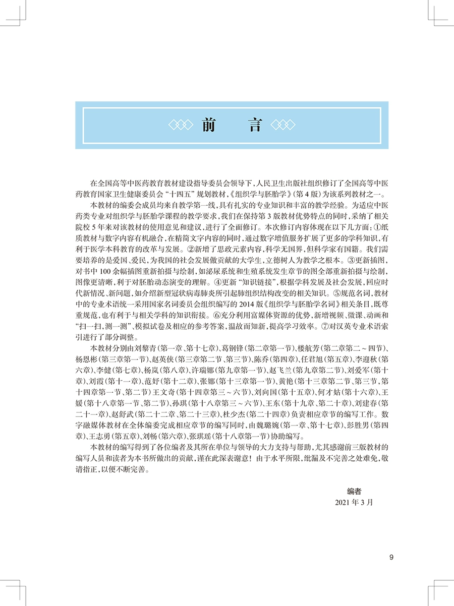 组织学与胚胎学 第4版 十四五教材 全国高等中医药教育教材 供中医学、针灸推拿学类专业用 刘黎青 葛钢锋 主编9787117316002
