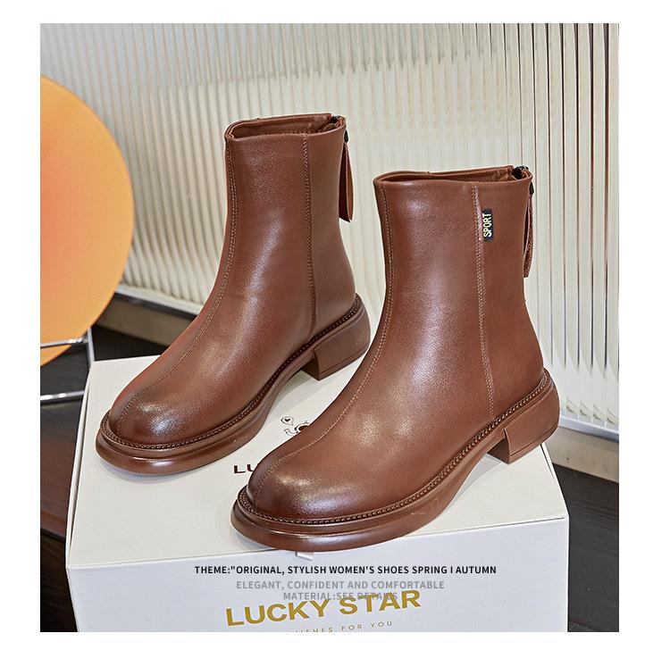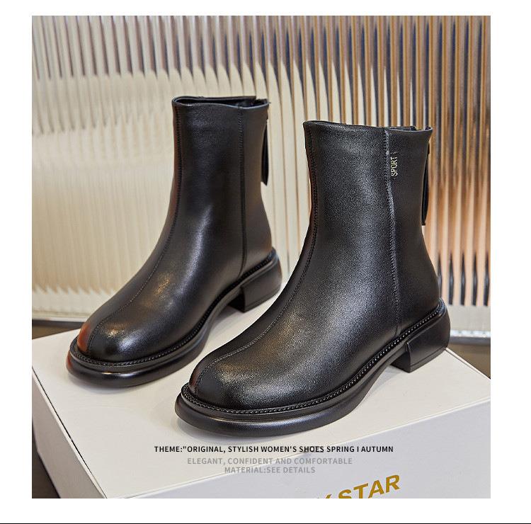 真皮马丁靴女2023秋季新款复古加绒短靴复古英伦风女靴百搭靴子女