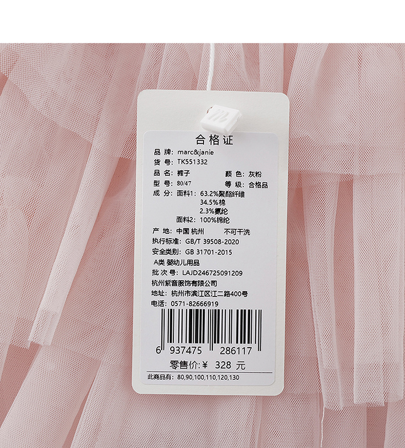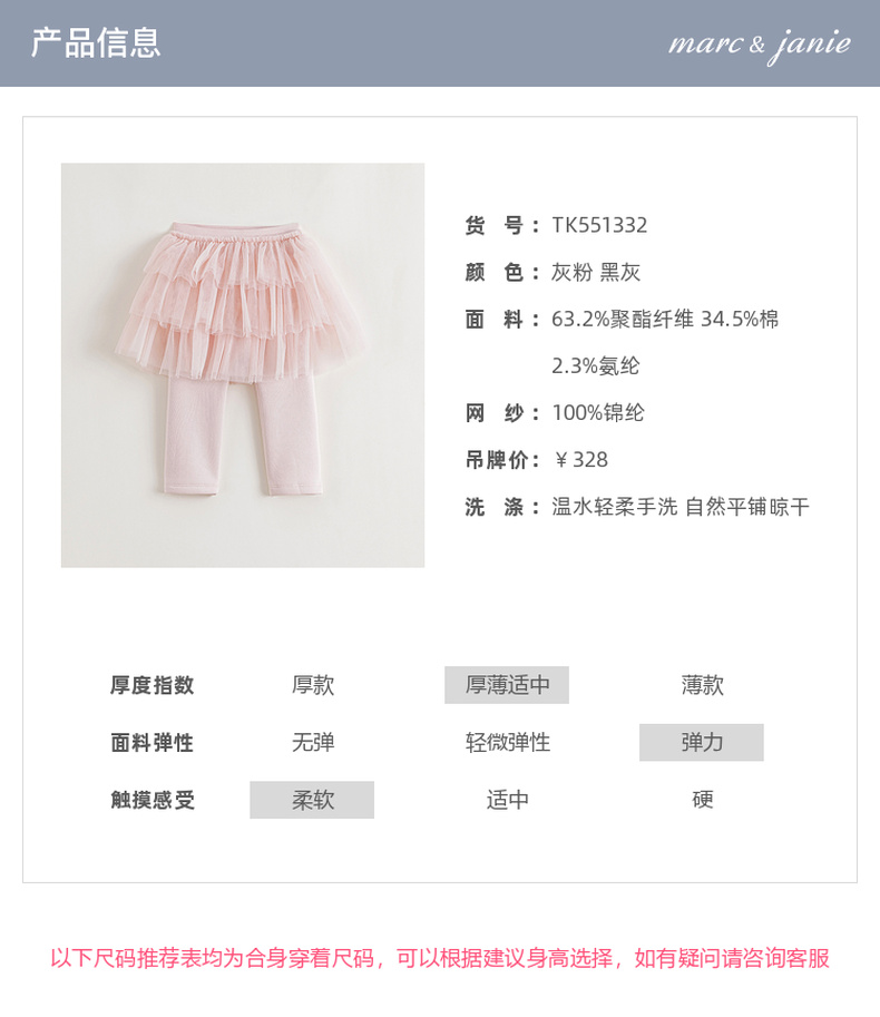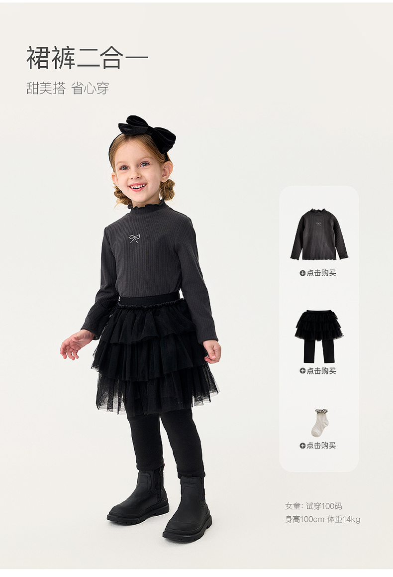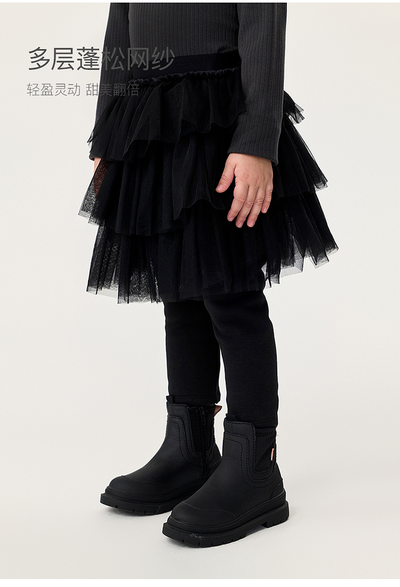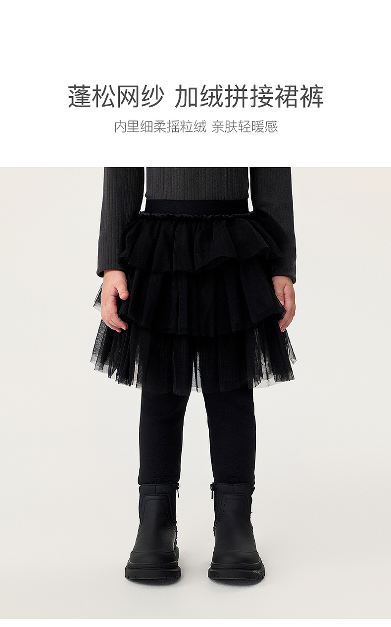 马克珍妮女童甜美网纱加绒拼接裙裤2025年秋冬新款551332