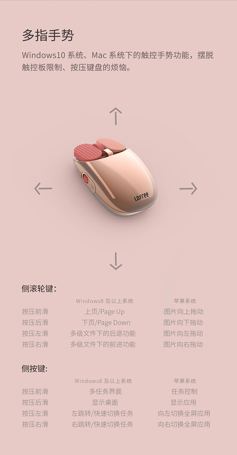 LOFREE/洛斐 薯片蓝牙鼠标 玫瑰金