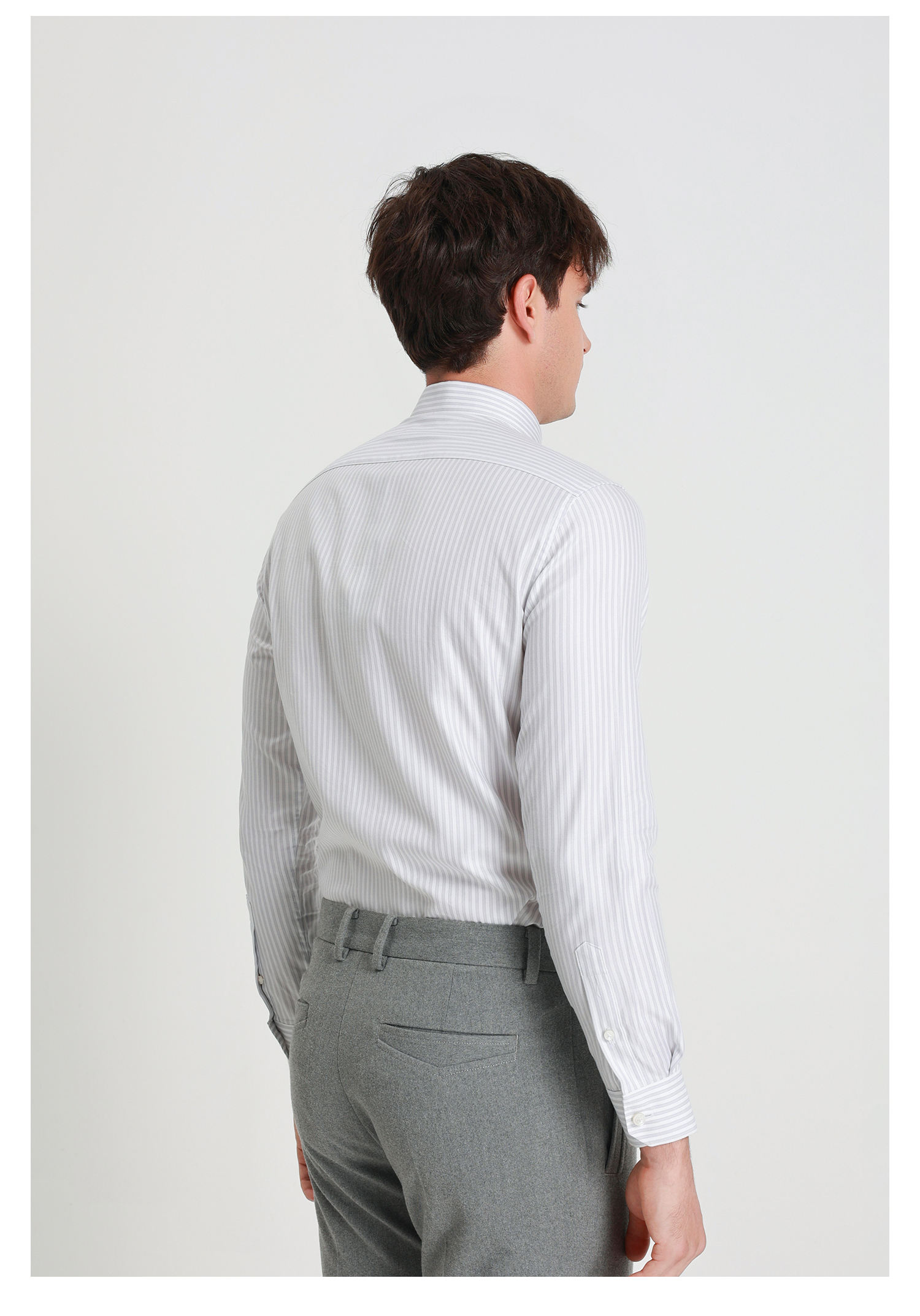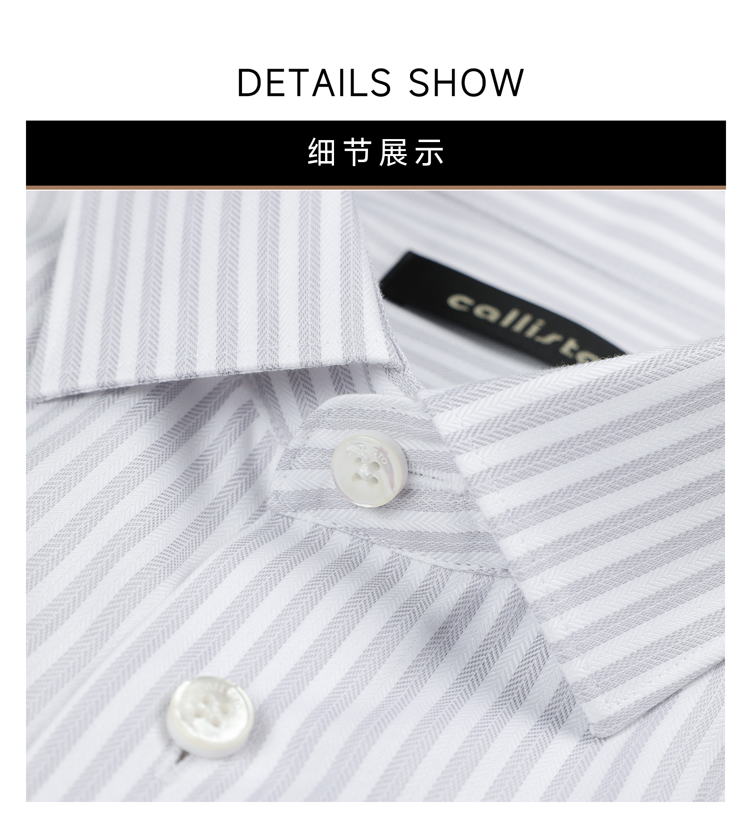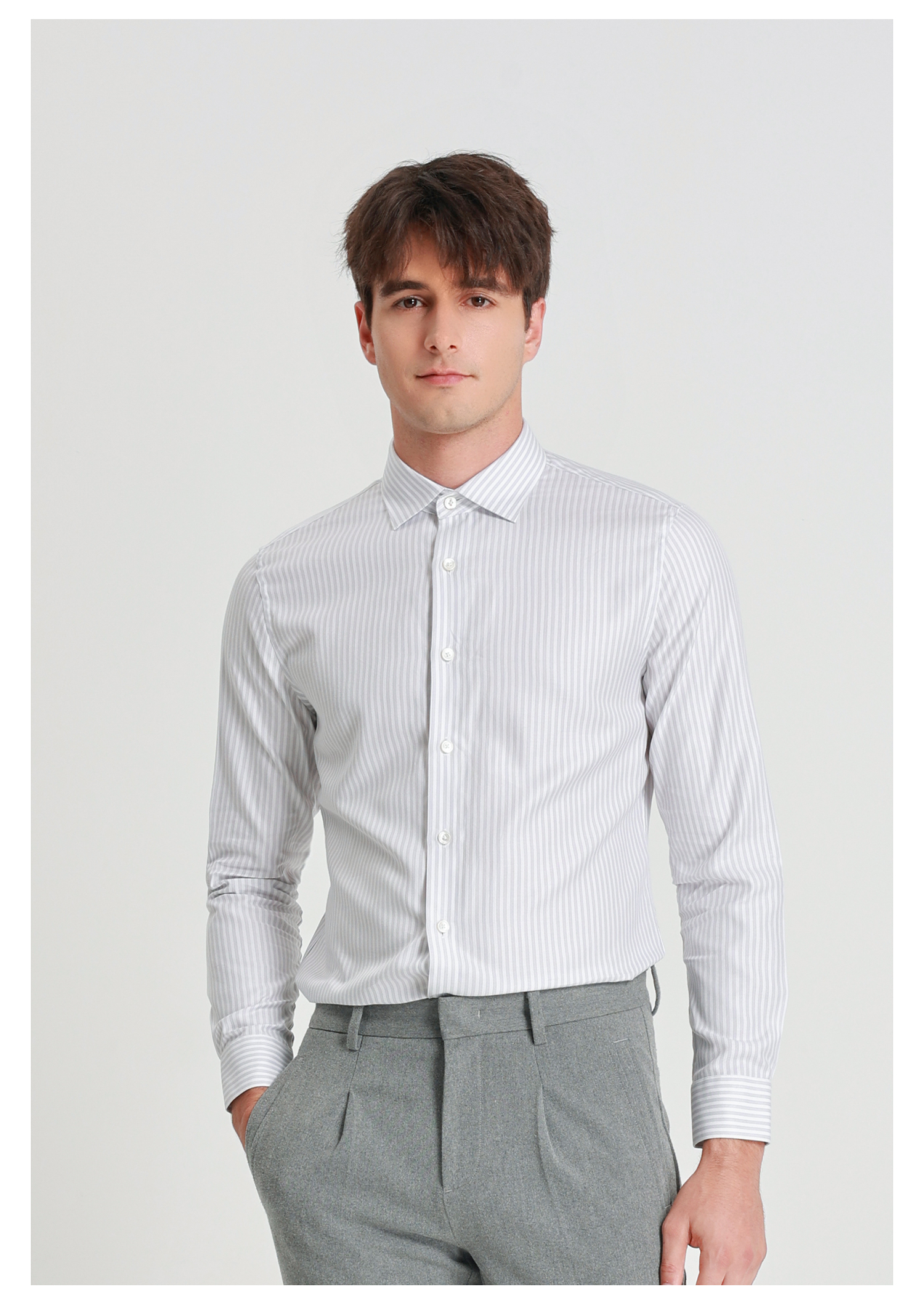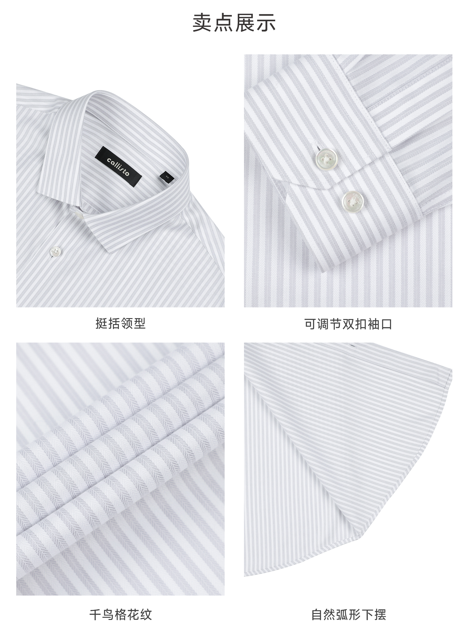 callisto浅灰鱼骨纹竖条纹长袖衬衫