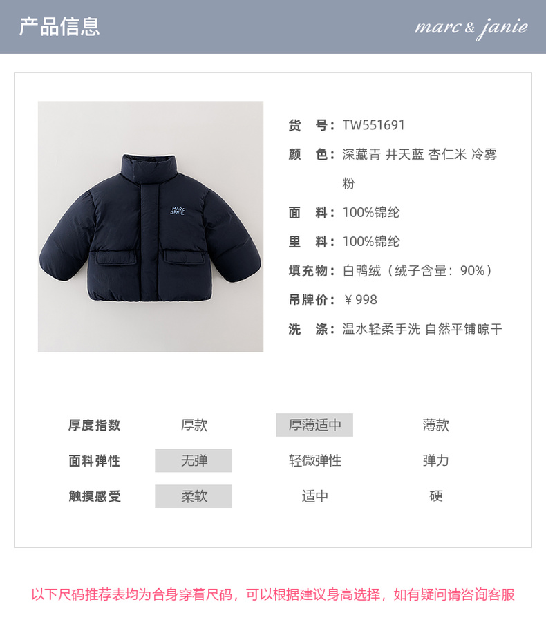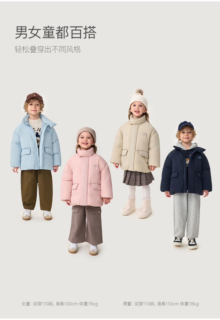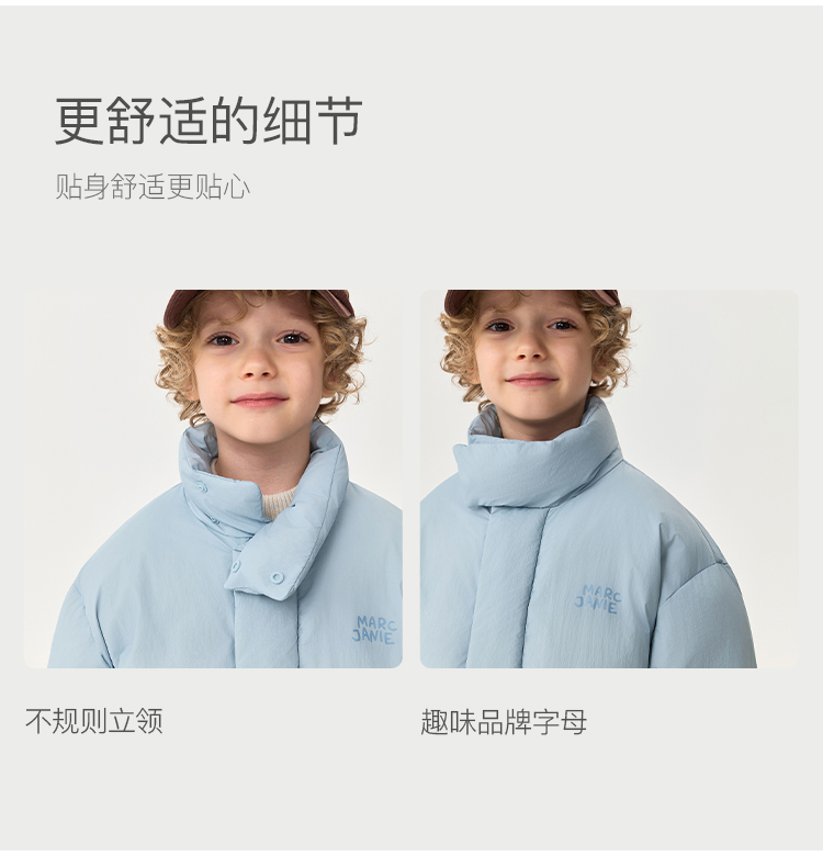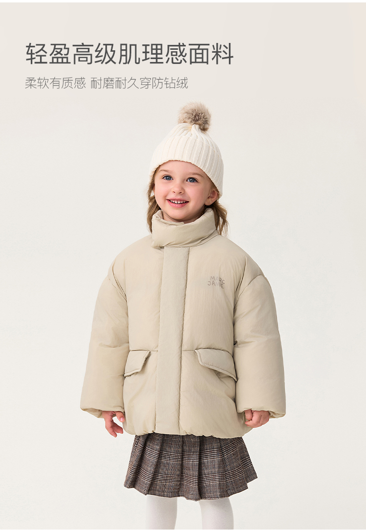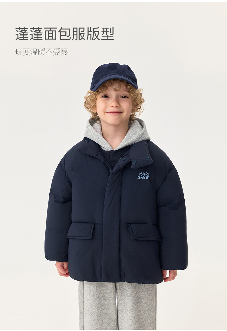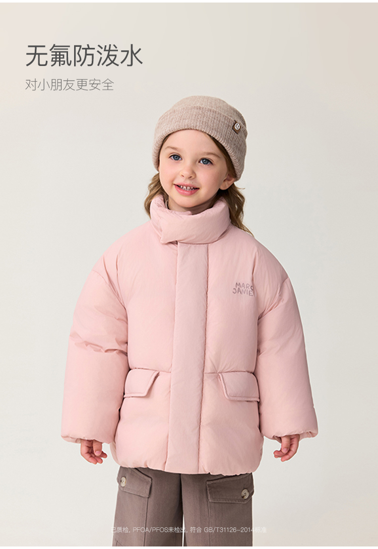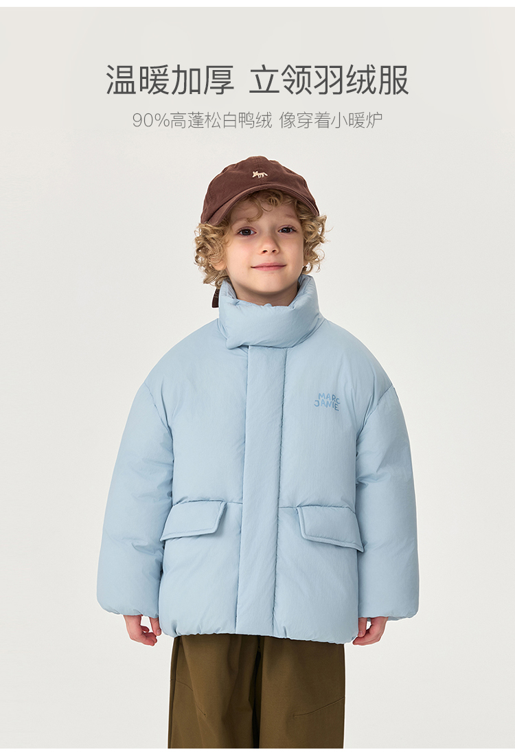 马克珍妮男女童轻盈温暖立领工装羽绒服2025年冬装新款551691