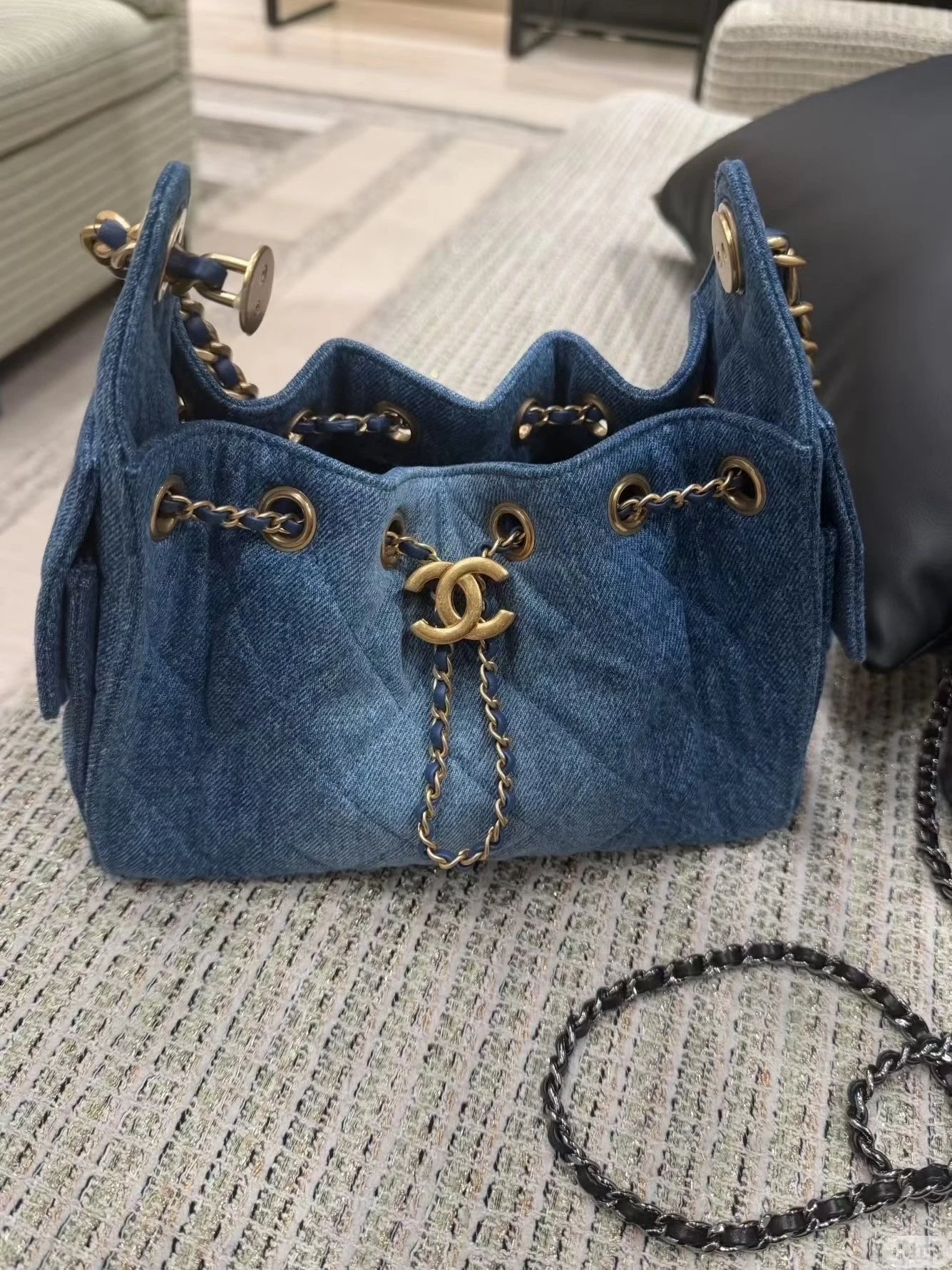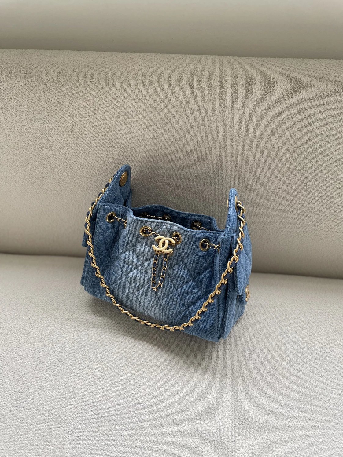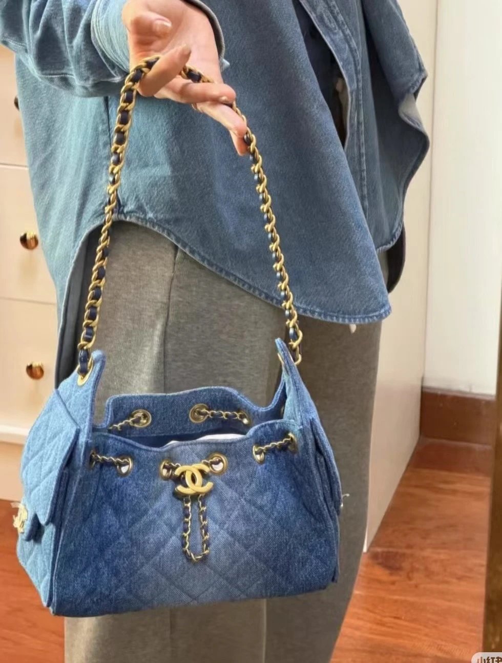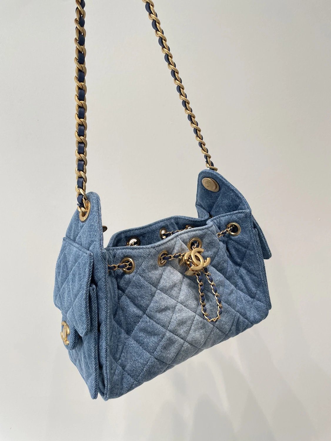 重磅渠道 牛仔25bag 夏日B入丹宁系列hobo 多口袋吊床包 单肩链条包