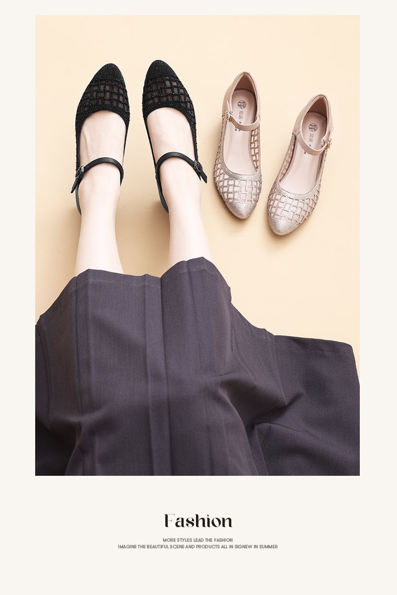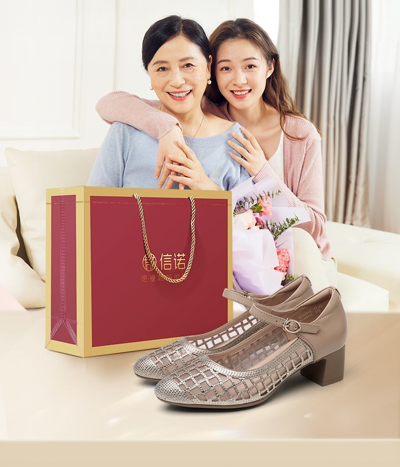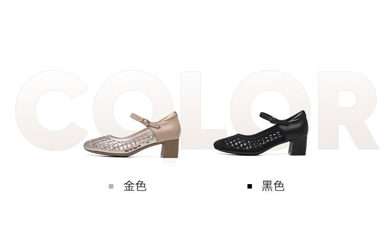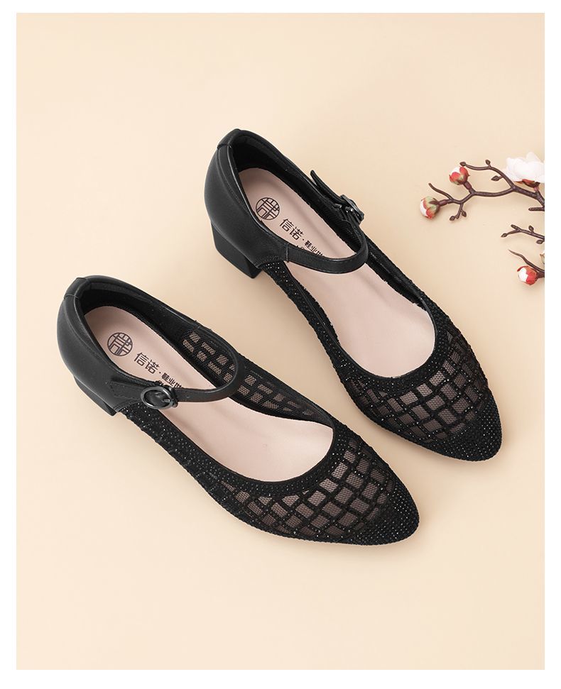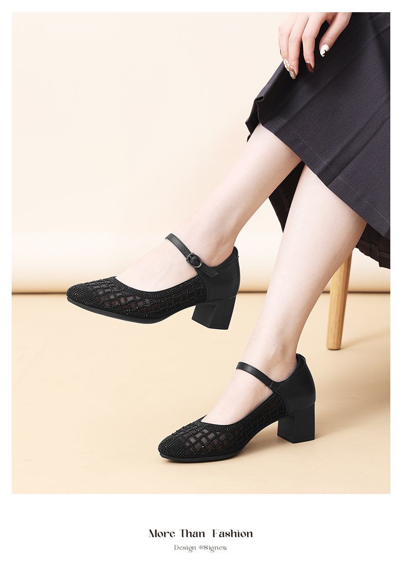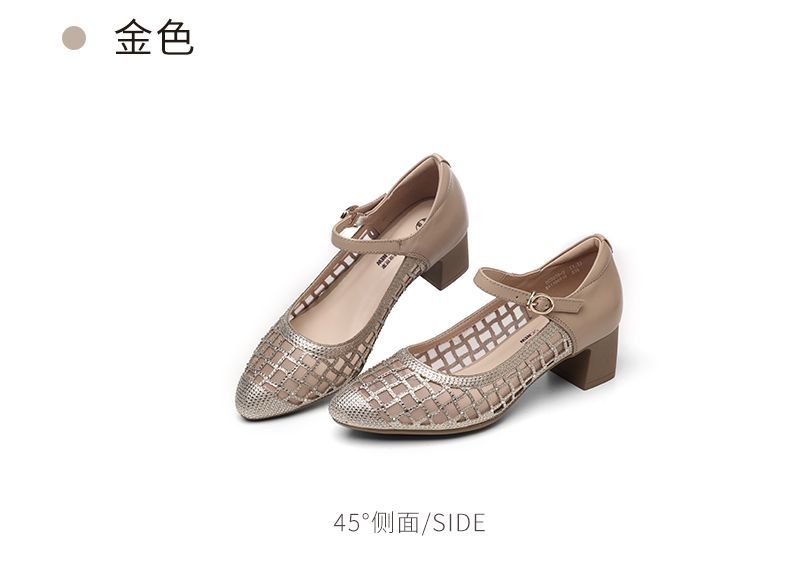 信诺真皮2025夏新款镂空女凉鞋粗跟软底舒适透气网纱通勤妈妈单鞋5C3273-3