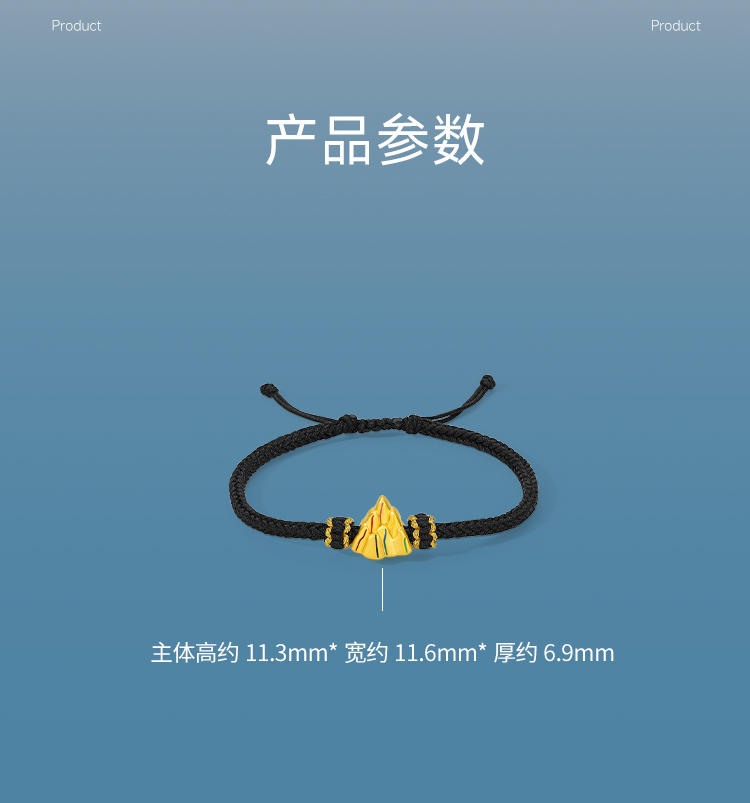 周六福5D硬金粉红手绳财币生肖龙经典花朵编绳定价足金官方手饰