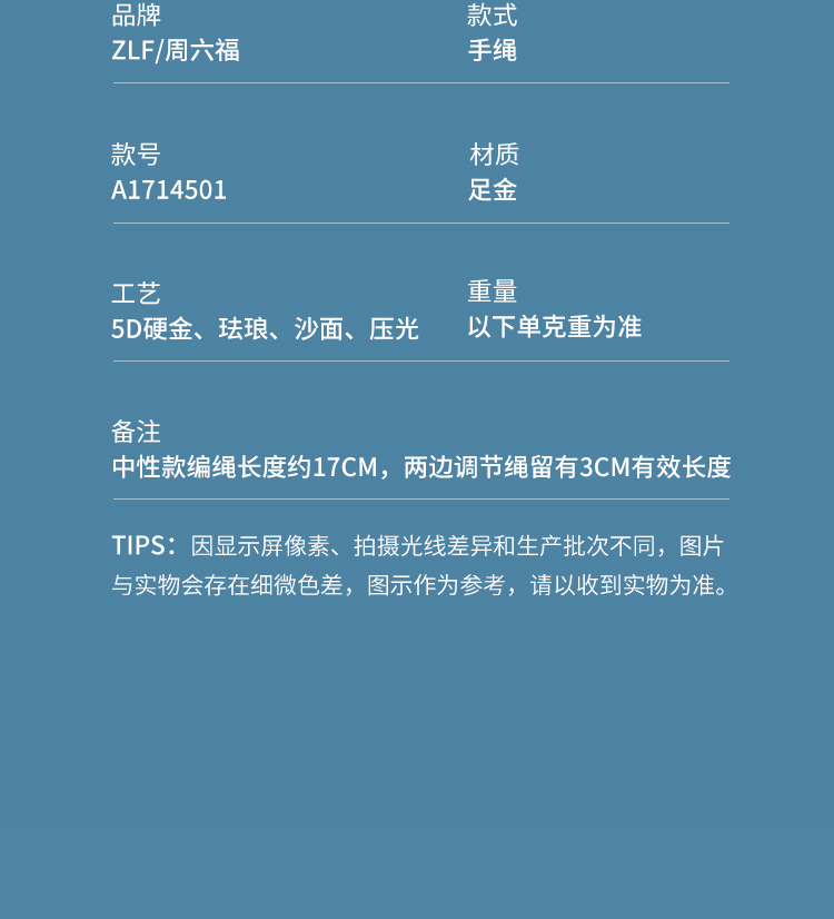 周六福黄金手绳女5d硬金定价足金珐琅手绳手链