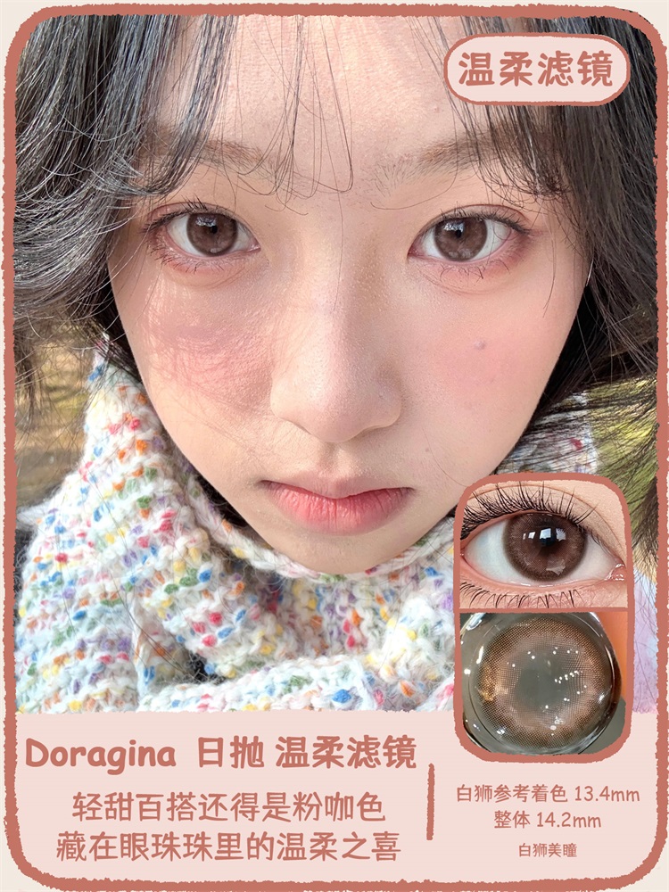Doragina旗下|温柔滤镜|14.2mm白狮参考着色中等直径 日抛 一盒十片装
