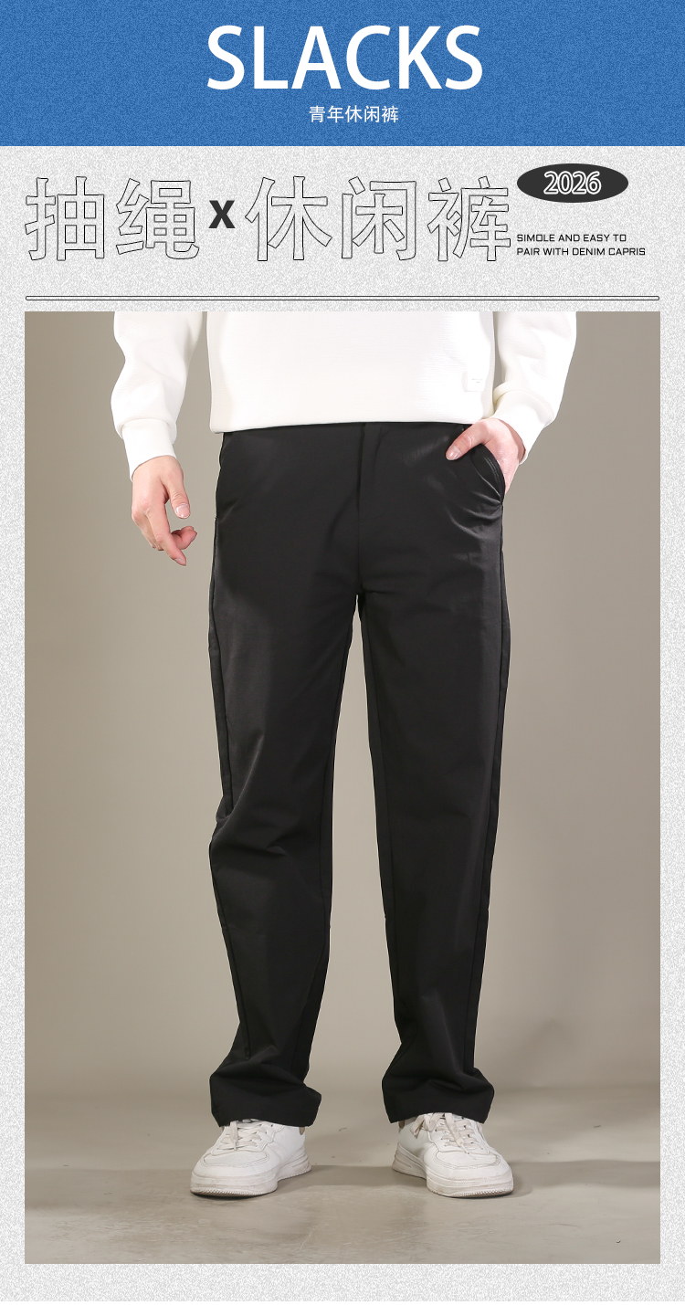DRONKOO 2026 松紧腰左口袋小织唛绣线直弹小直筒中厚休闲长裤