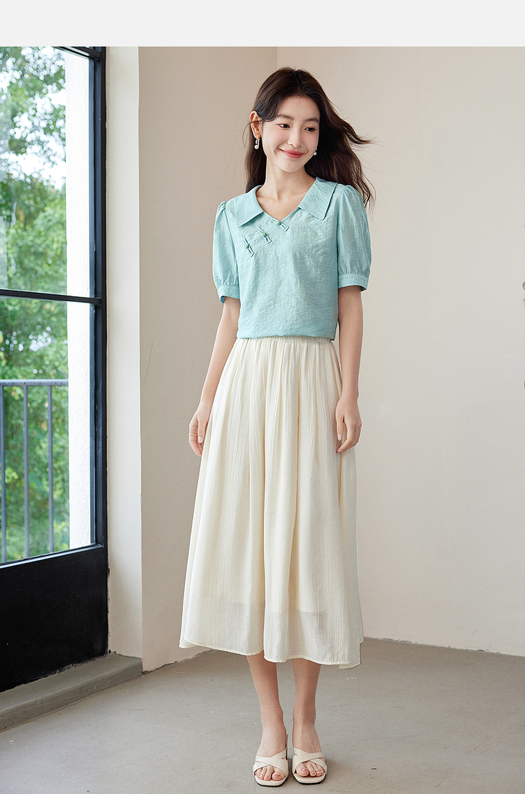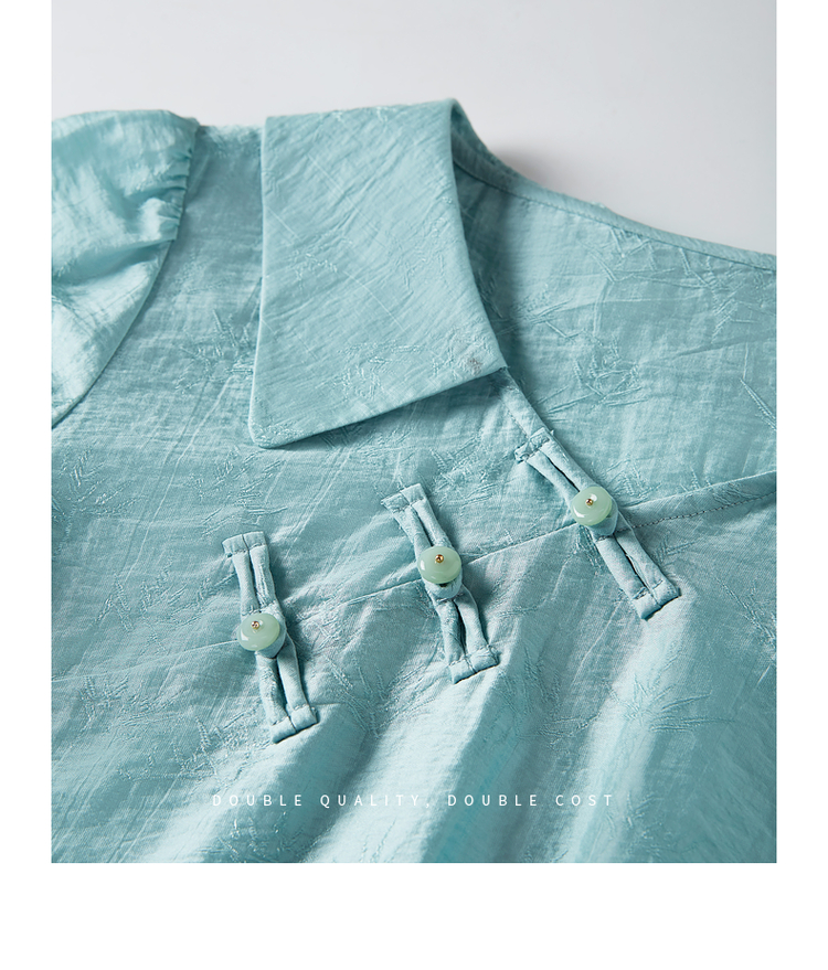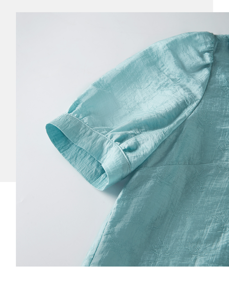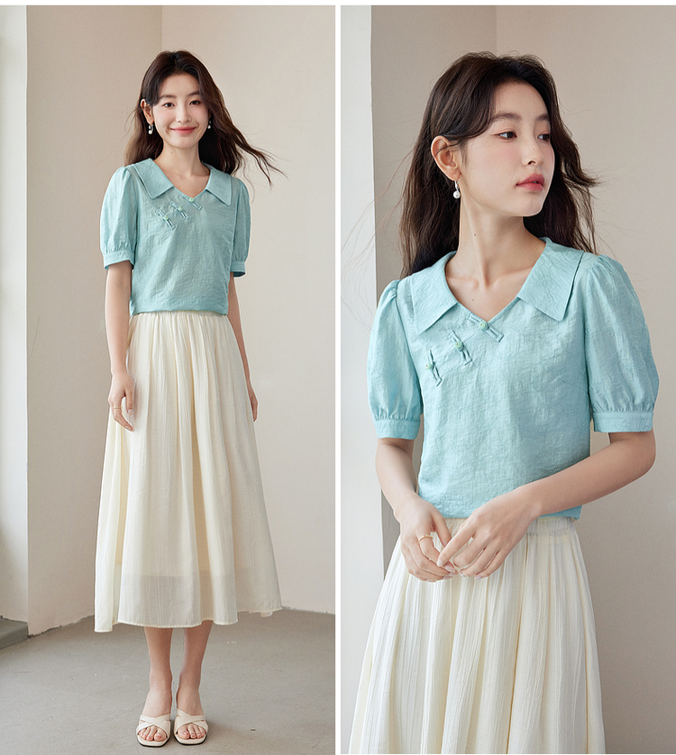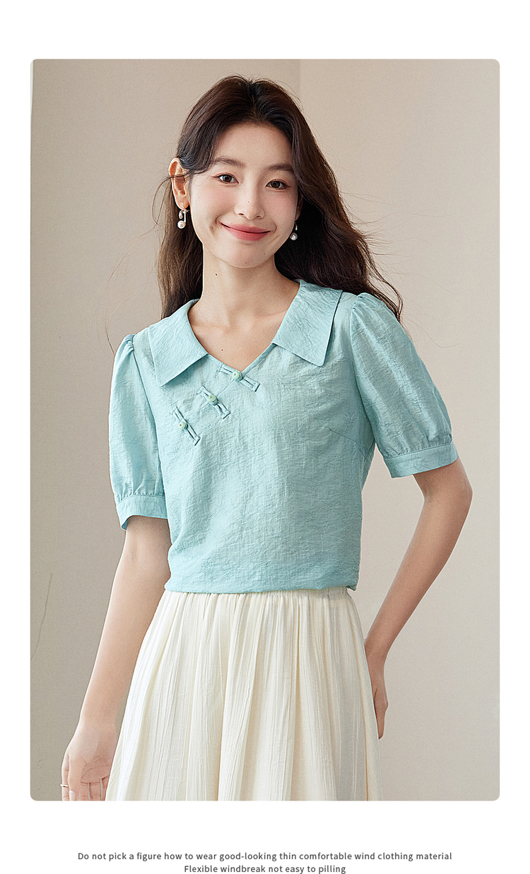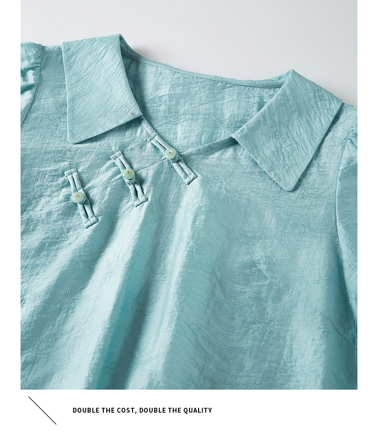【专属特价】熙世界新中式盘扣天丝衬衫2025夏装新款气质泡泡袖翻领国风上衣