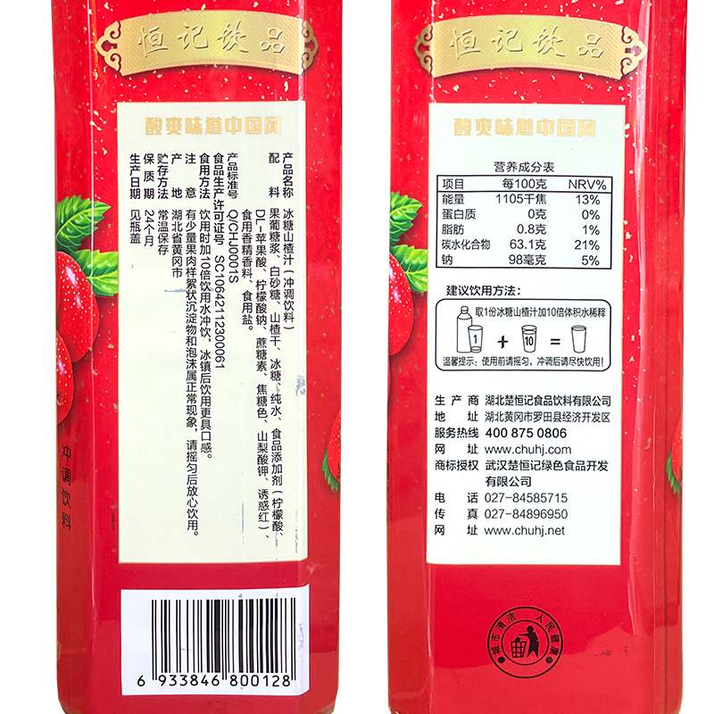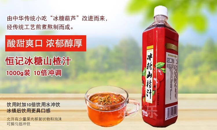 恒记冰糖山楂汁1kg冲调果味饮料冰糖葫芦汁山楂浓缩果汁饮料