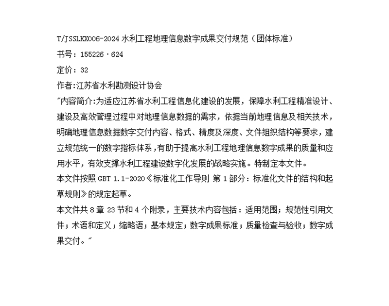 T/JSSLKX006-2024水利工程地理信息数字成果交付规范(团体标准)