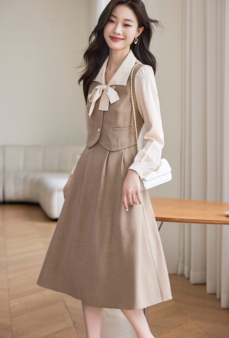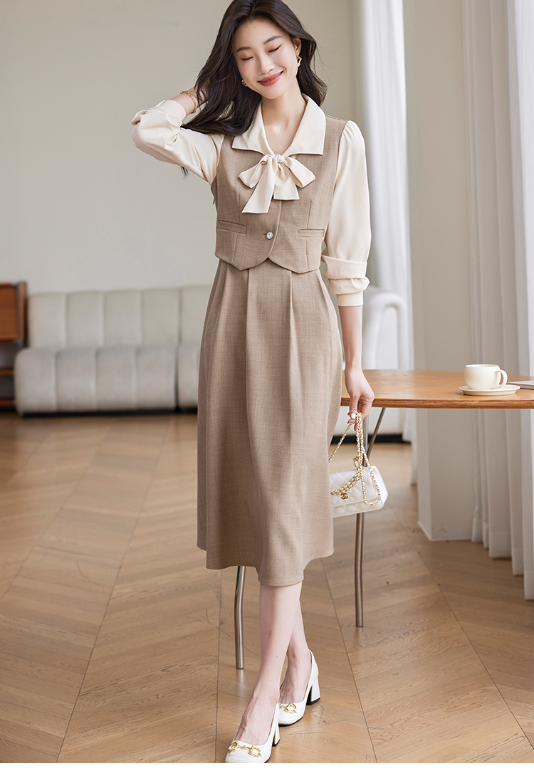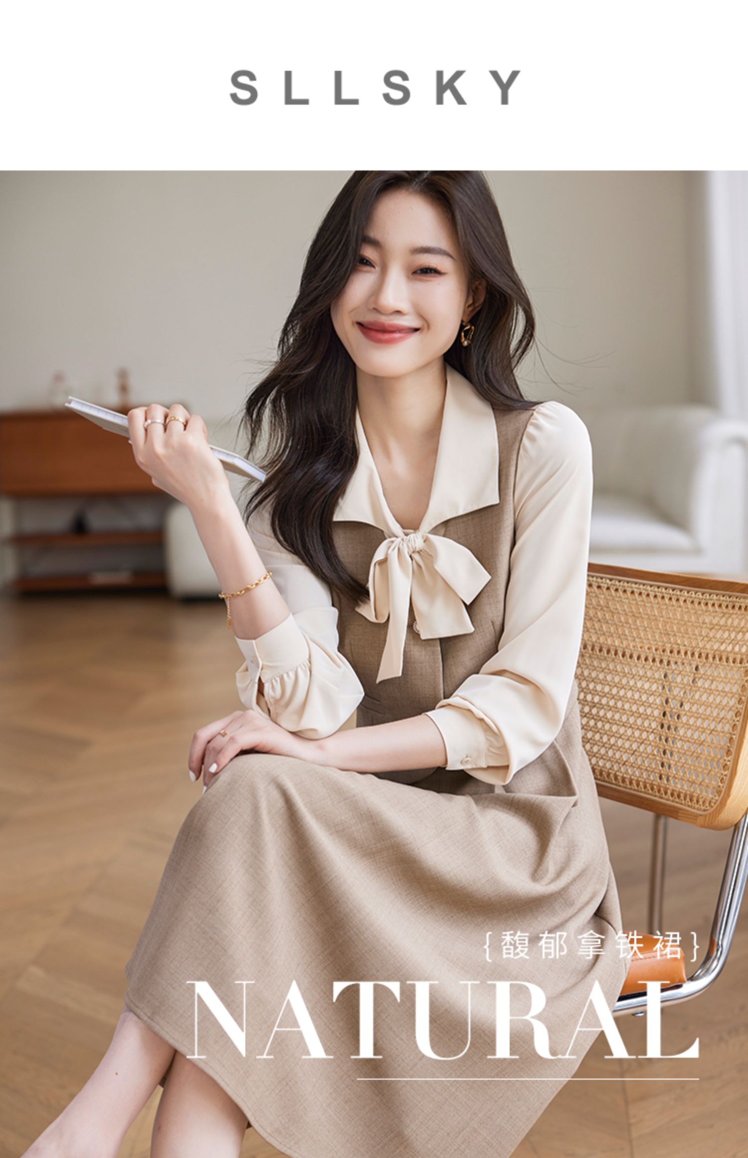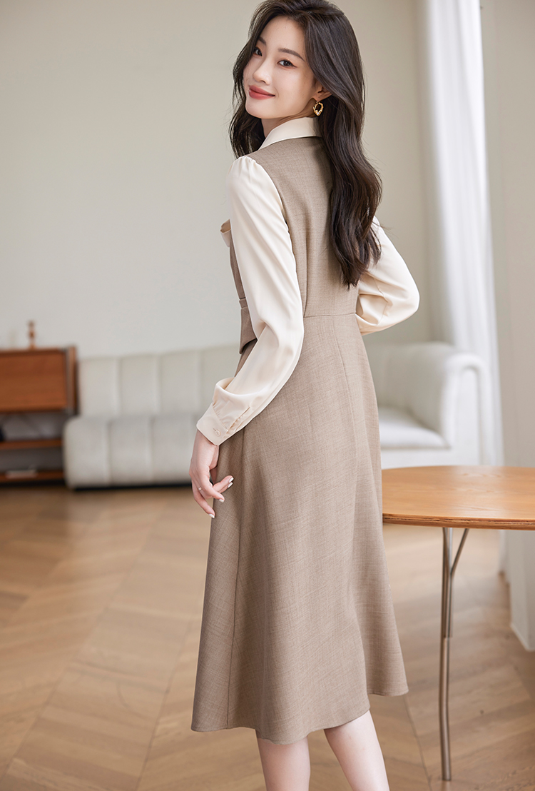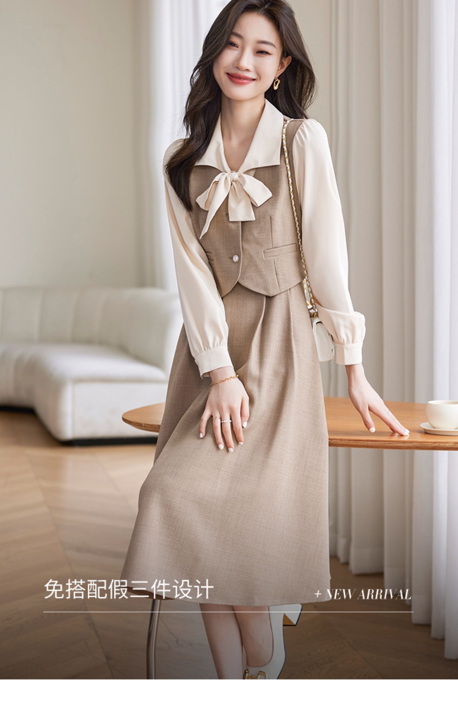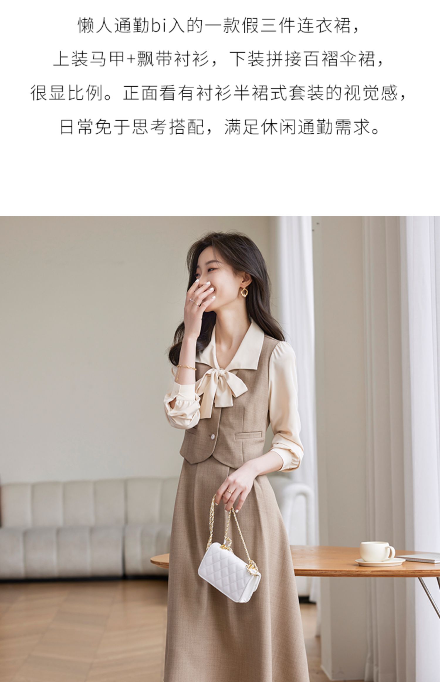 【1件75折,2件73折】熙世界法式气质假两件连衣裙女高级感通勤面试休闲裙子2025秋新款