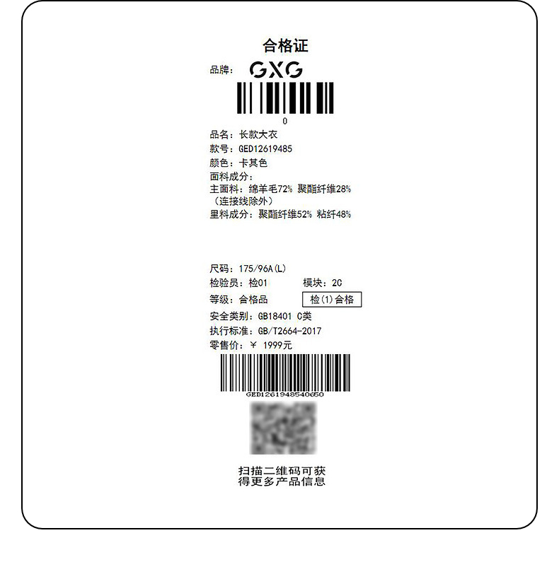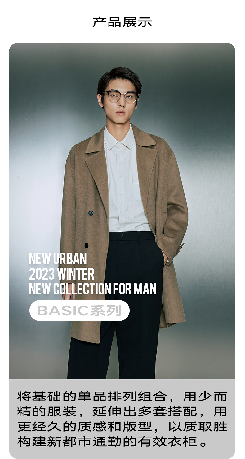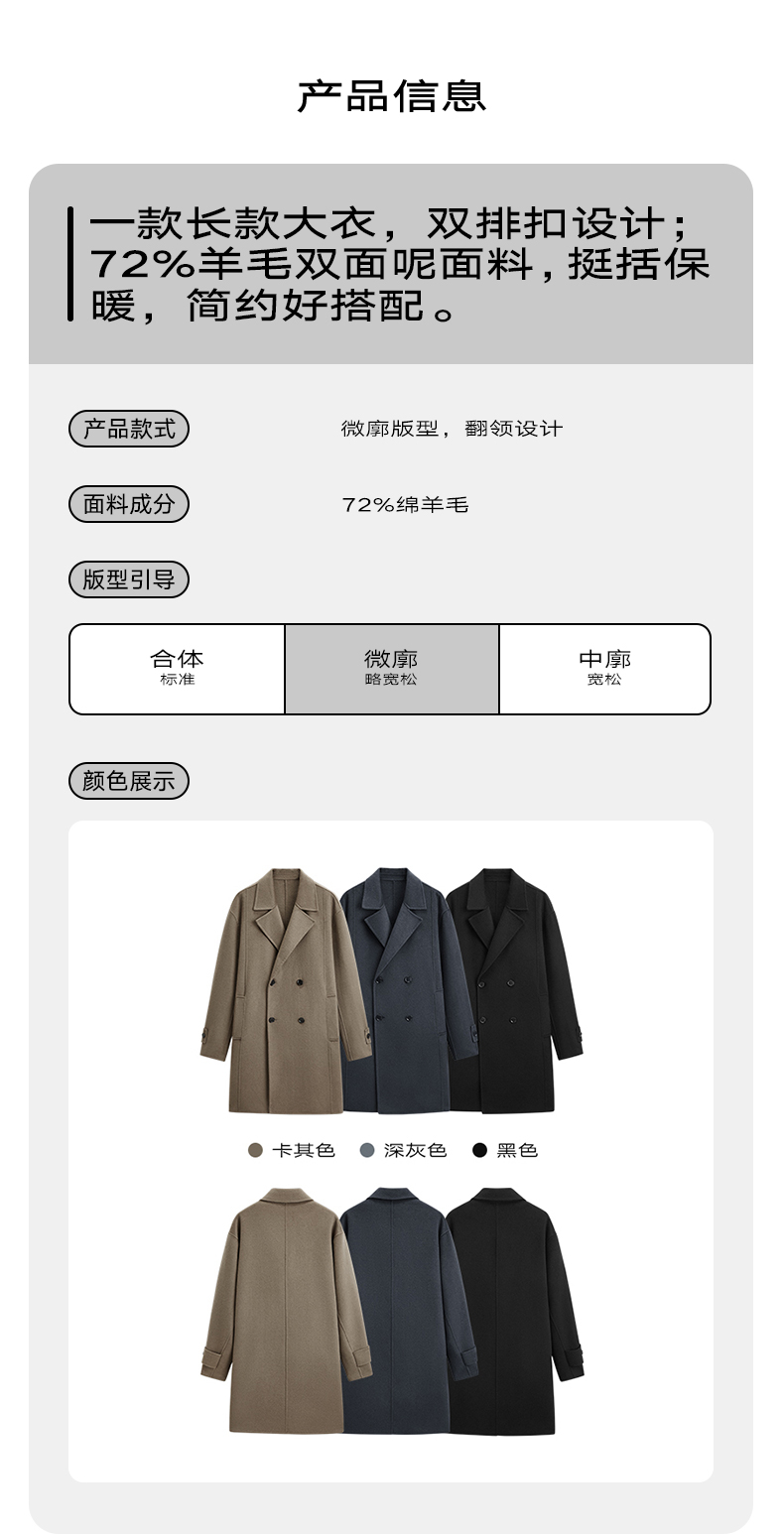 GXG男装 基础经典款多色宽松休闲长款大衣外套 冬季热卖气质大衣