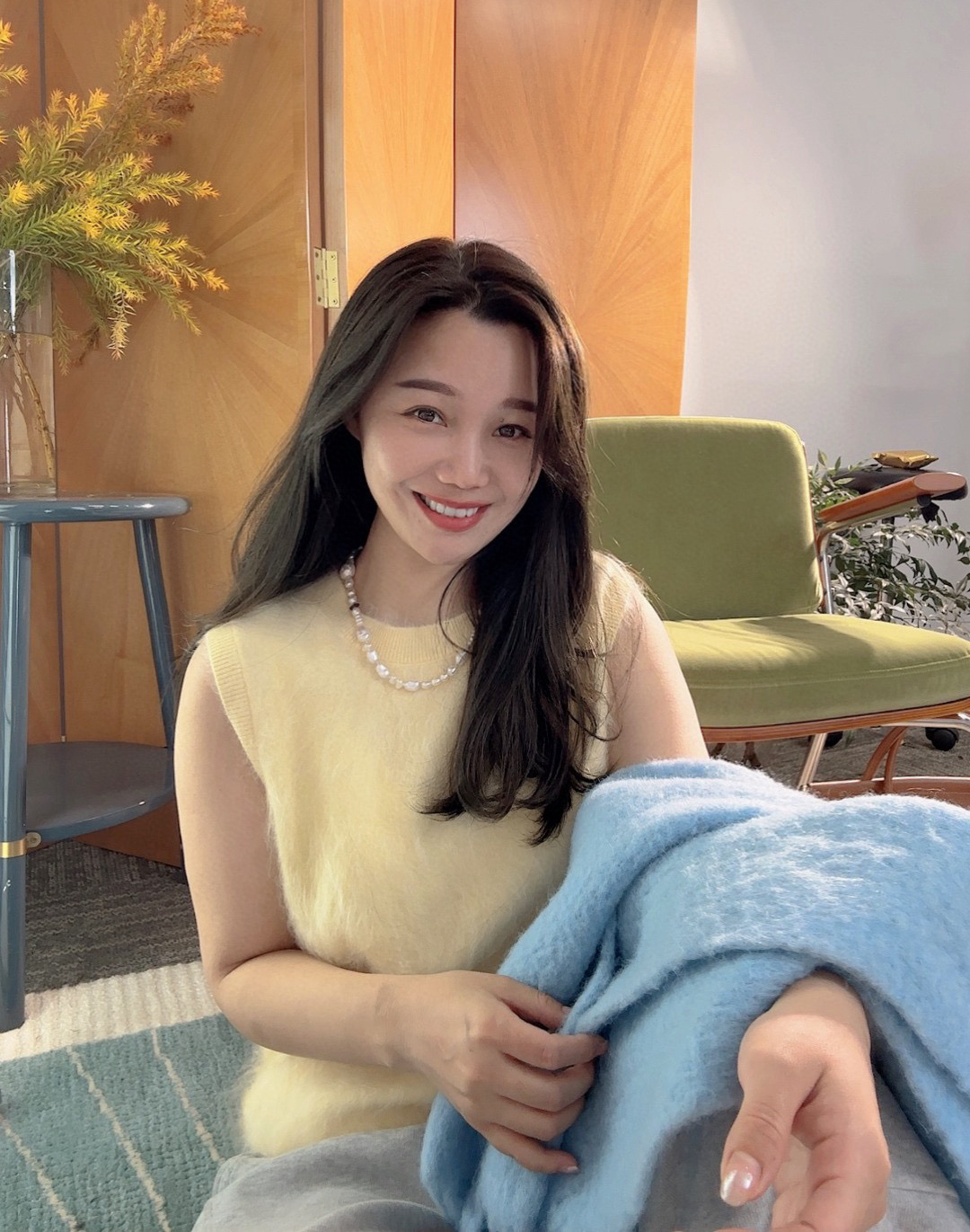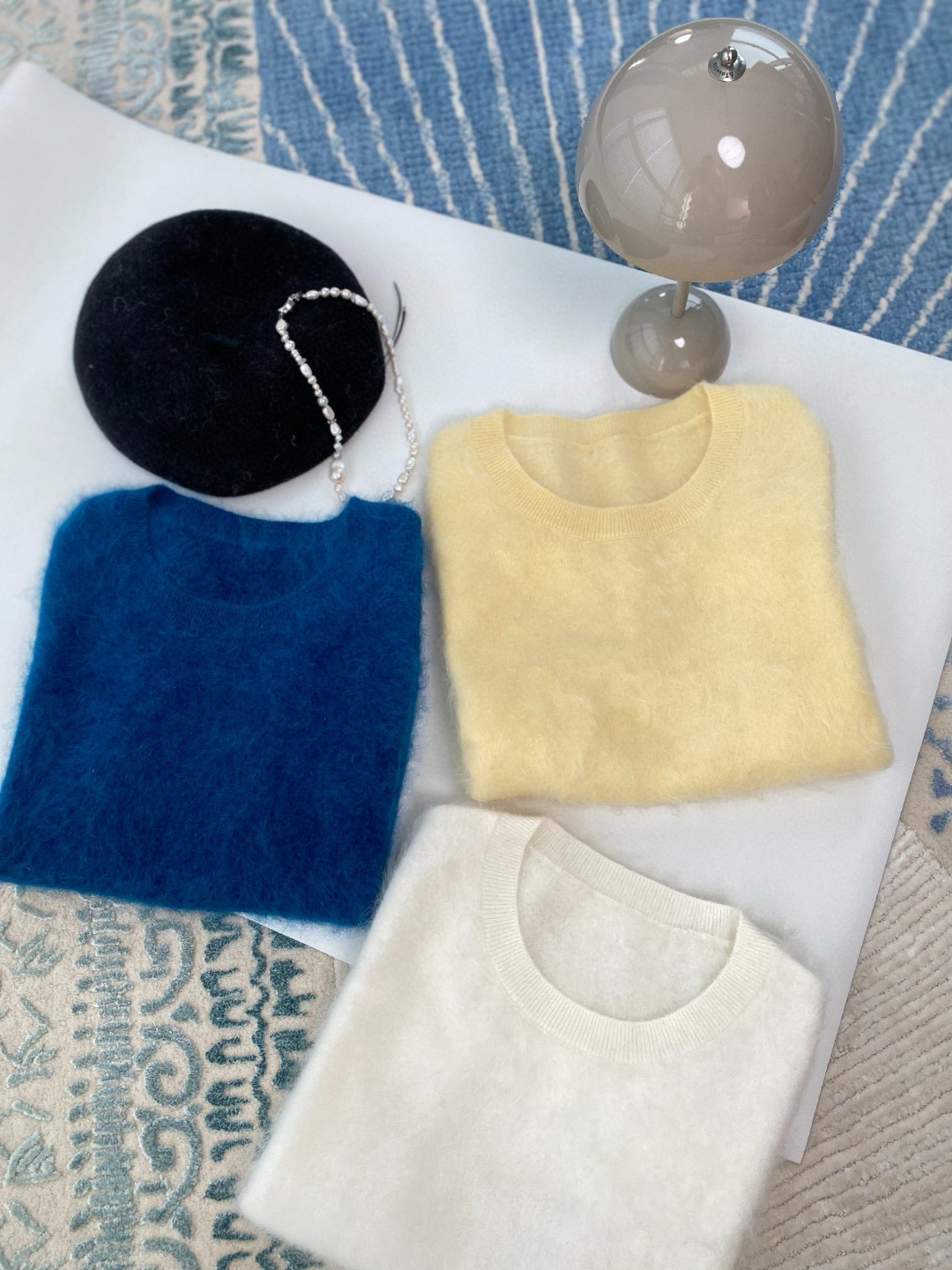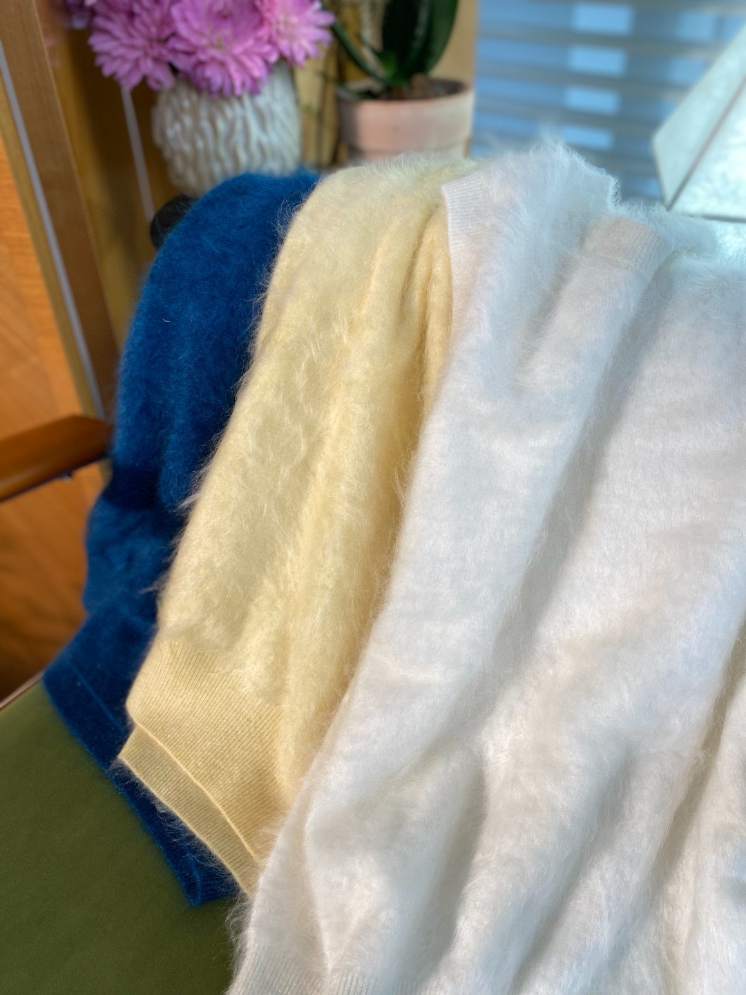 上次直播小露出的羊绒背心也准备了,甄选阿尔巴斯绒山羊作为you质的羊绒拉绒原料,特别喜欢这个蓝,图片很难拍出它的美,实物是花纱的感觉,很特别耐看。