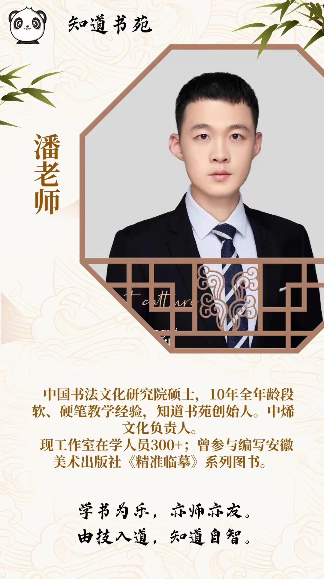 知道书苑是一家致力于弘扬中国传统书画和传统国学的综合性书画馆,始终以推行原创美育教学为己任。是国家文化部书画考级定点机构。知道书苑起源于创立于2004年的瑞刚书法工作室,办学至今十余载,具备充足的教学经验,以及强大的教学、教研团队。涉及范畴包括幼儿课程、高考课程、考研课程,以及教师培训课程。秉持认真负责的教学态度15年磨一剑,打造优质完善的教学体系。