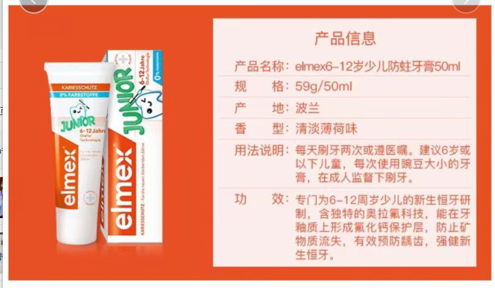 德国Elmex艾美适宝宝牙膏乳牙防蛀含氟水果儿童牙膏