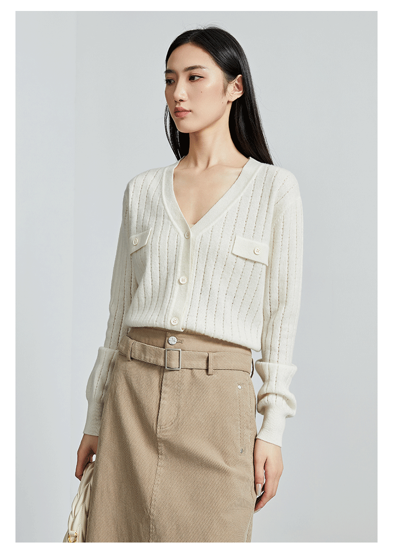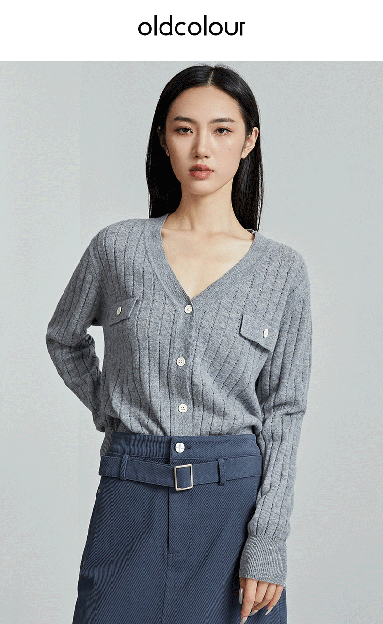oldcolour秋季新款羊毛衫女100%纯绵羊毛V领长袖针织衫P340507A1