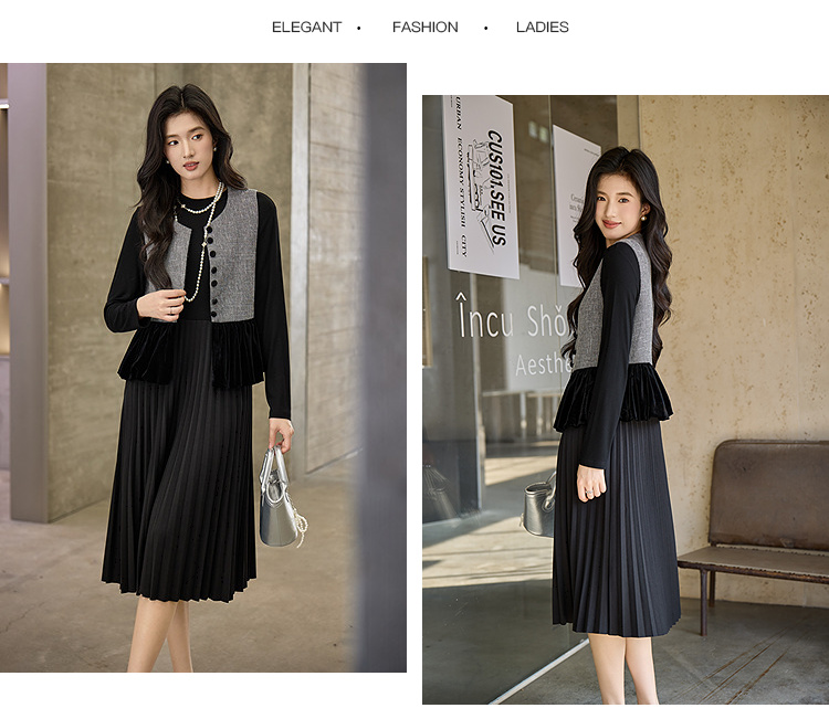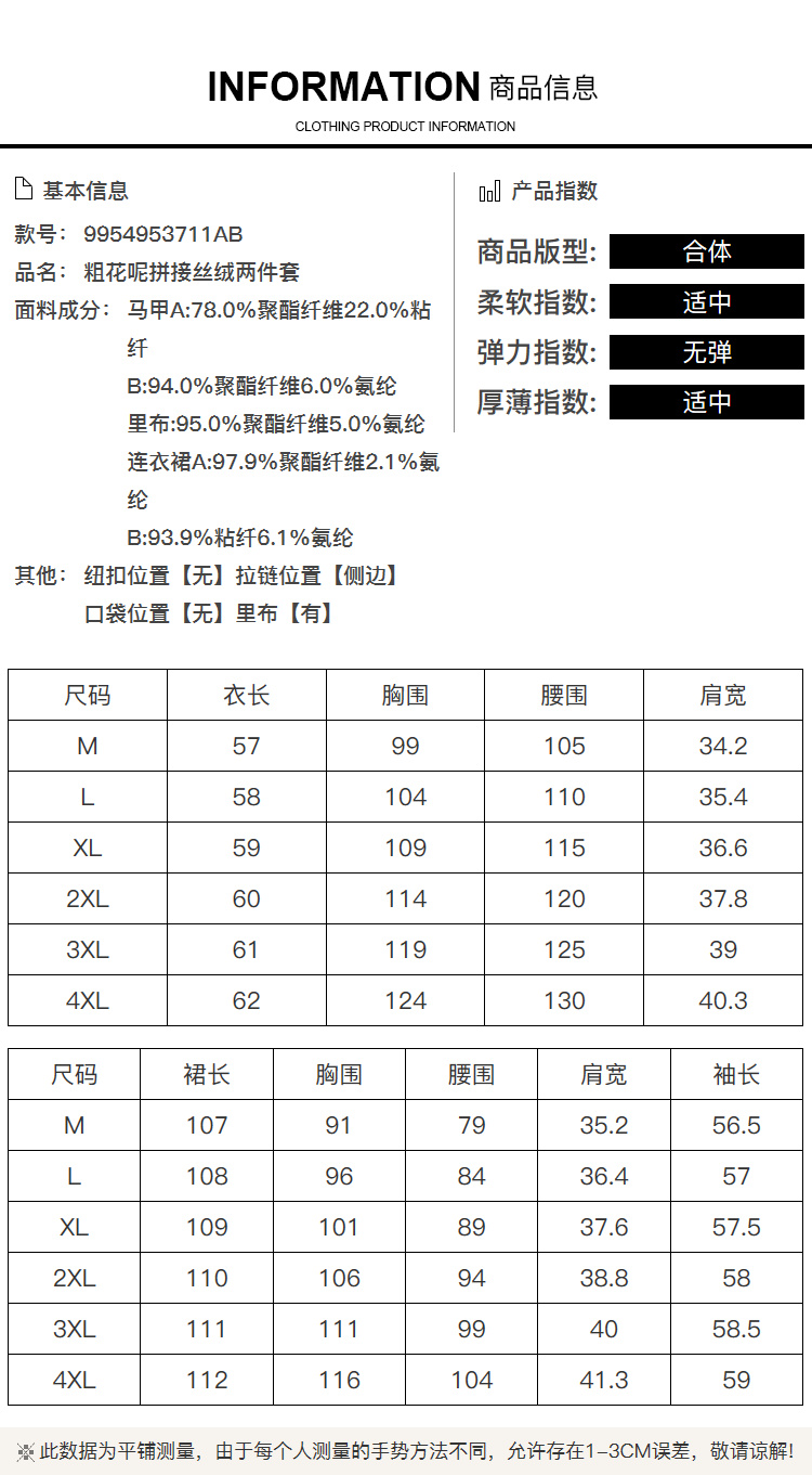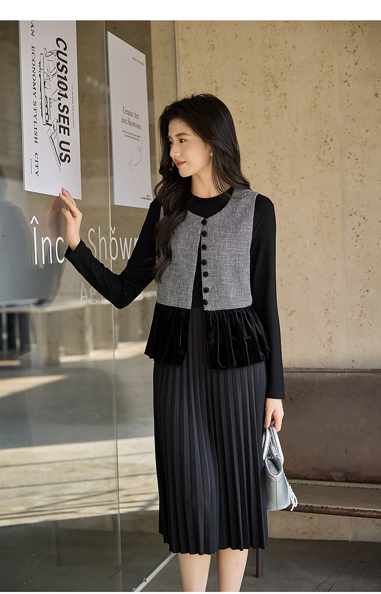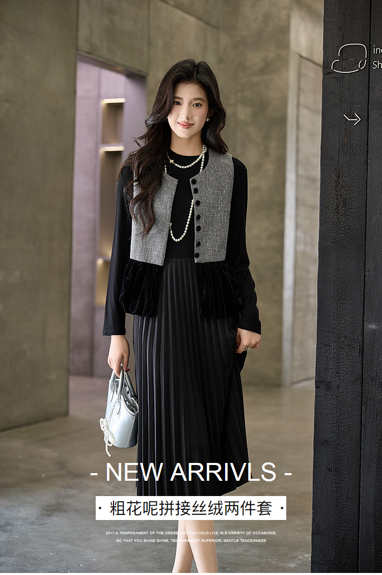 奢姿大码女装2025冬季粗花呢拼接黑色丝绒两件套胖妹妹时尚套装9954953711AB