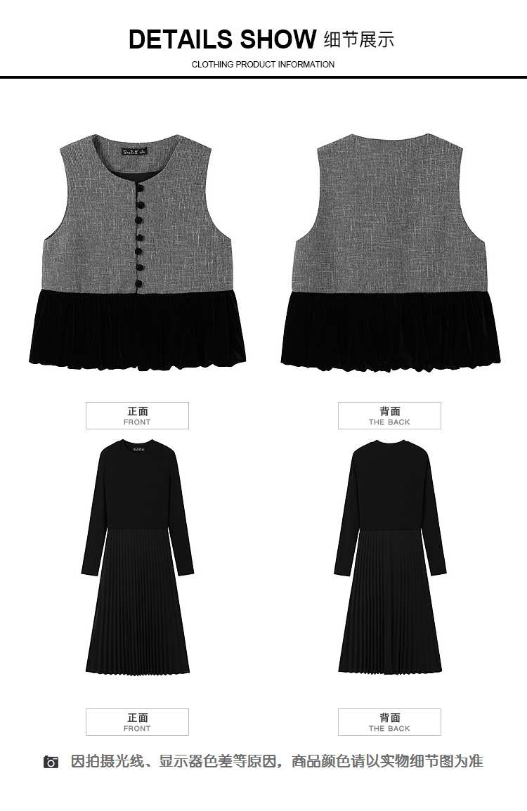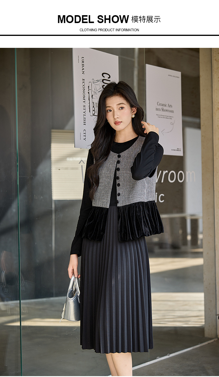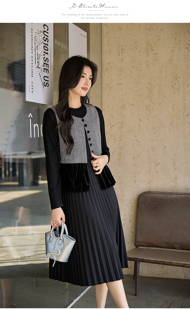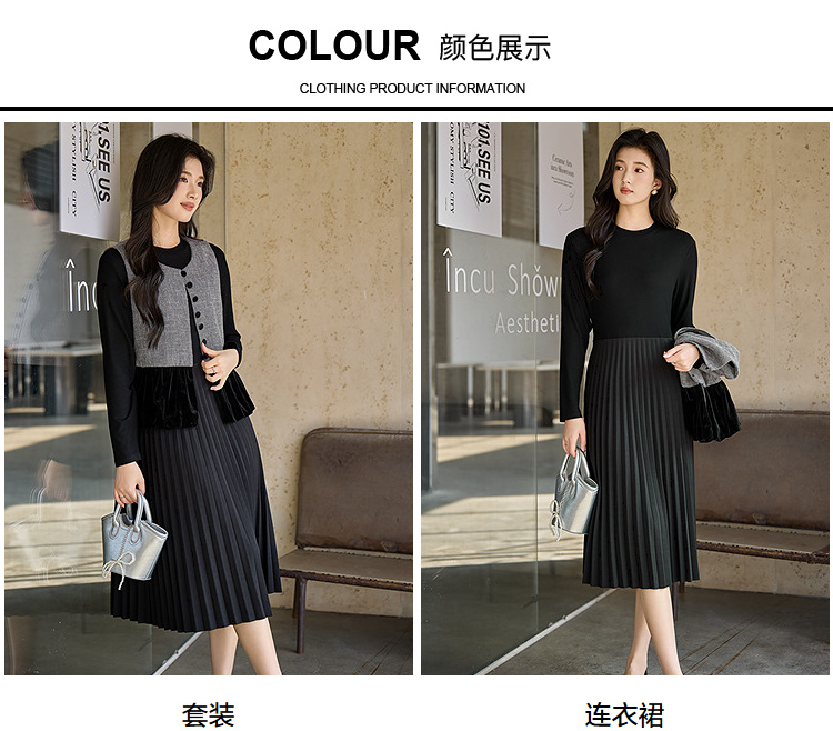 奢姿大码女装2025冬季粗花呢拼接黑色丝绒两件套胖妹妹时尚套装9954953711AB