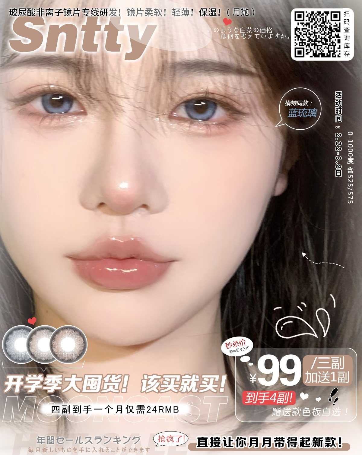 镜片材质: 非离子月抛