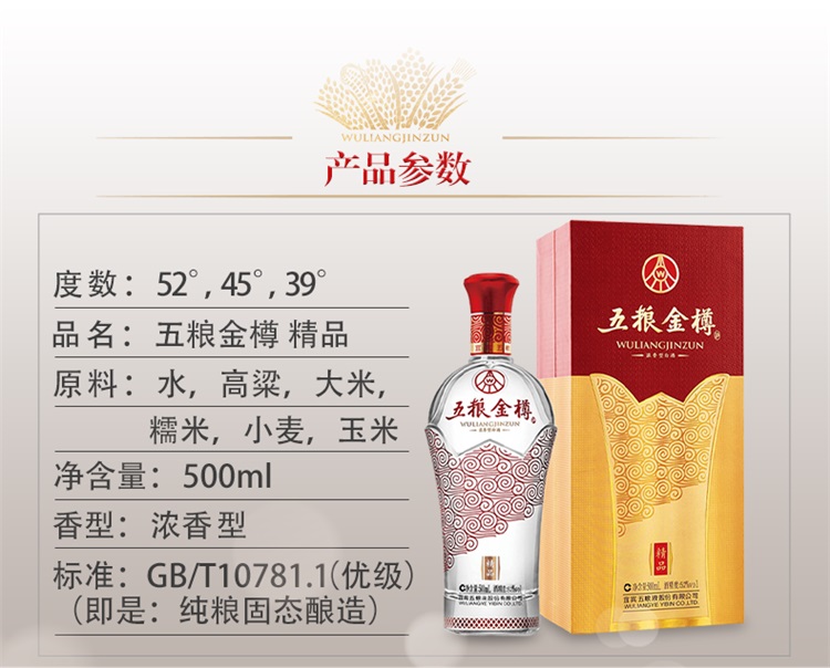 五粮液 五粮金樽精品52度500ml 浓香型白酒