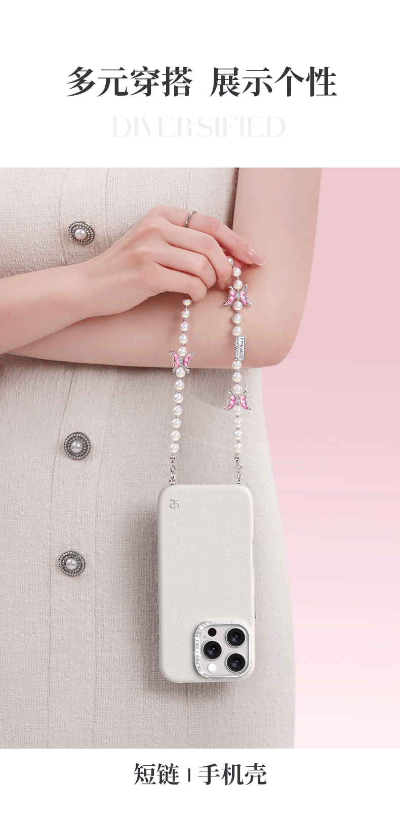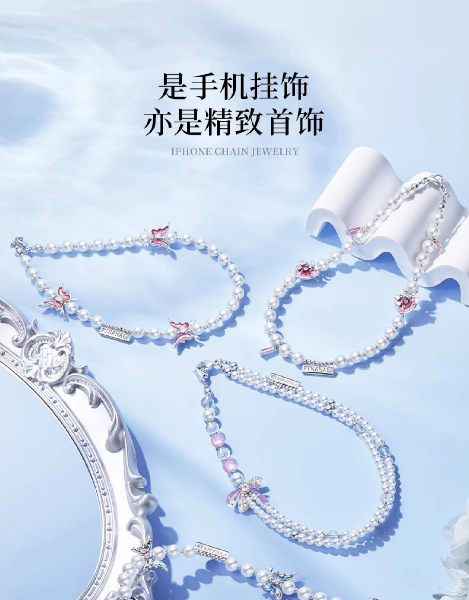 PYNANA翡娜娜高端珠饰手机链挂链挂绳斜跨可背适用苹果