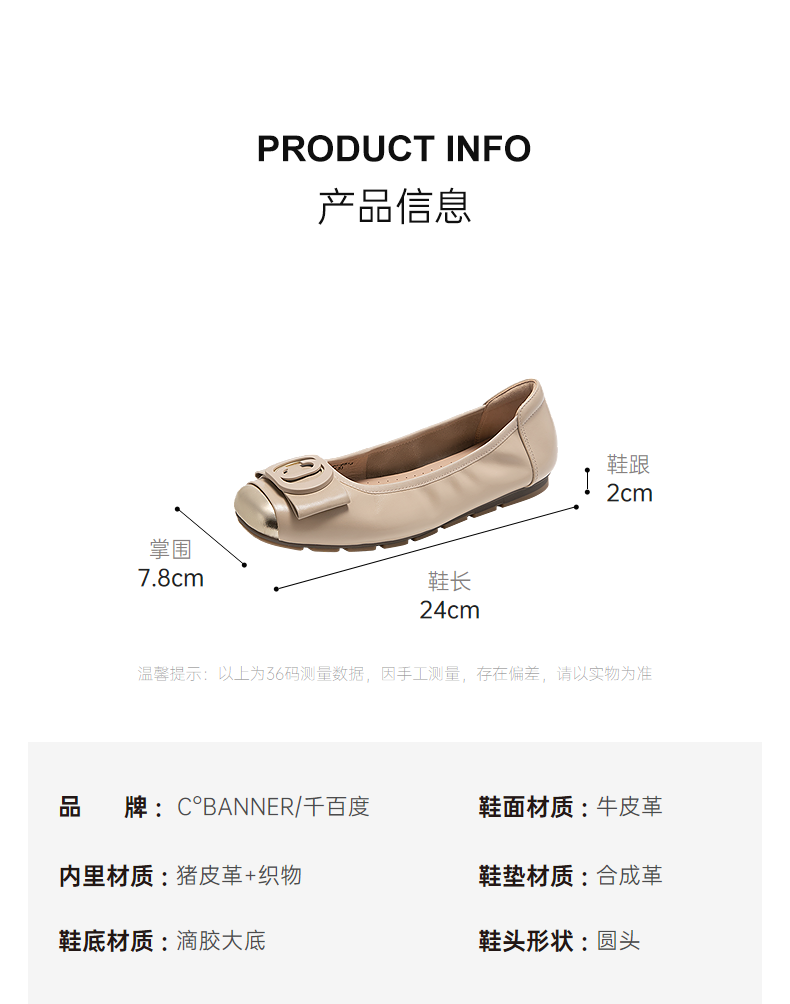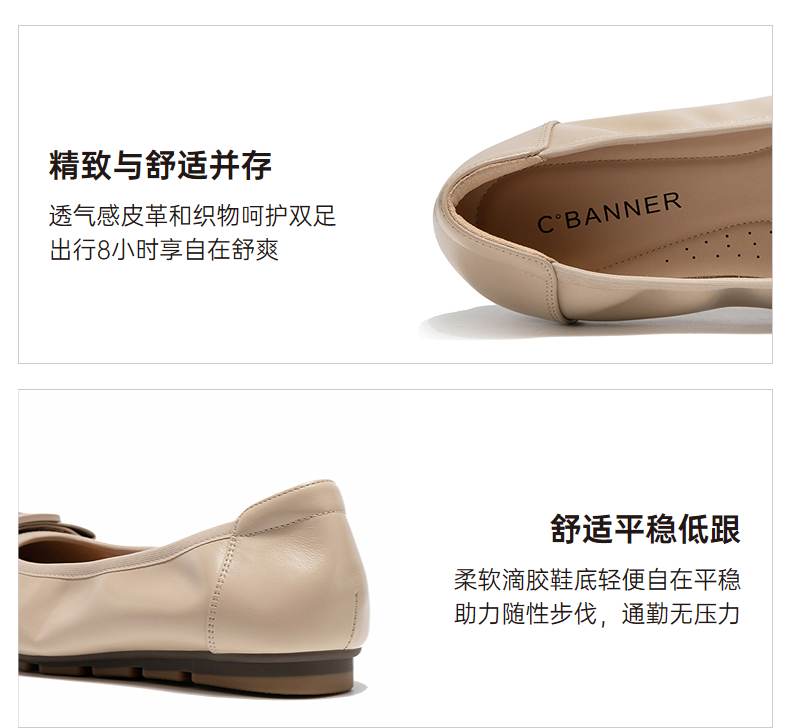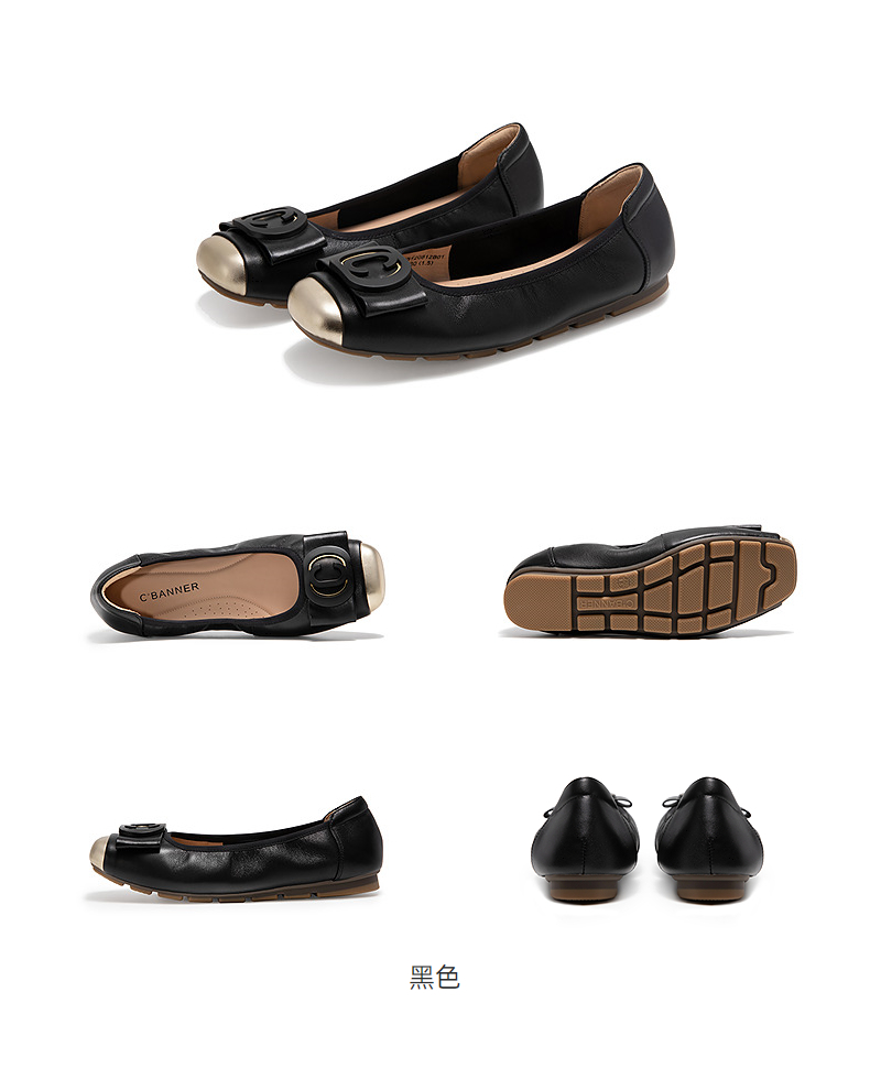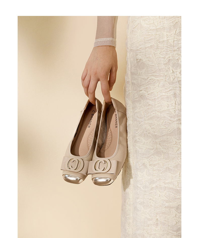 千百度真皮浅口单鞋女气质百搭新款温柔风不累脚平底鞋通勤晚晚鞋A25120812