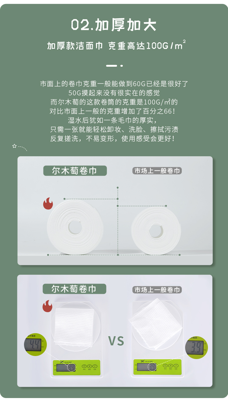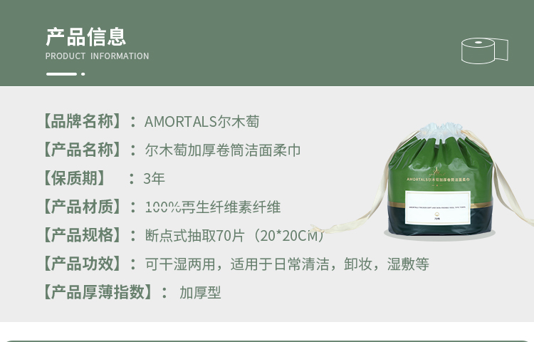 尔木萄加厚卷筒式洗脸巾一次性洁面巾干湿两用70片