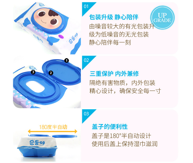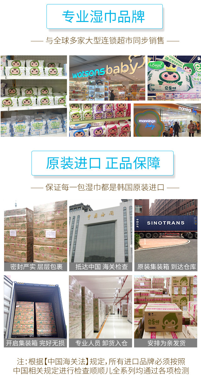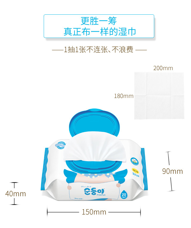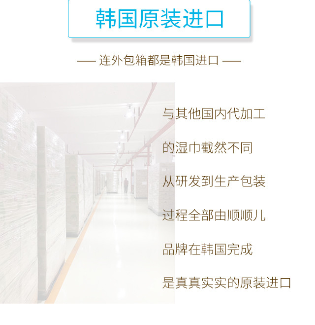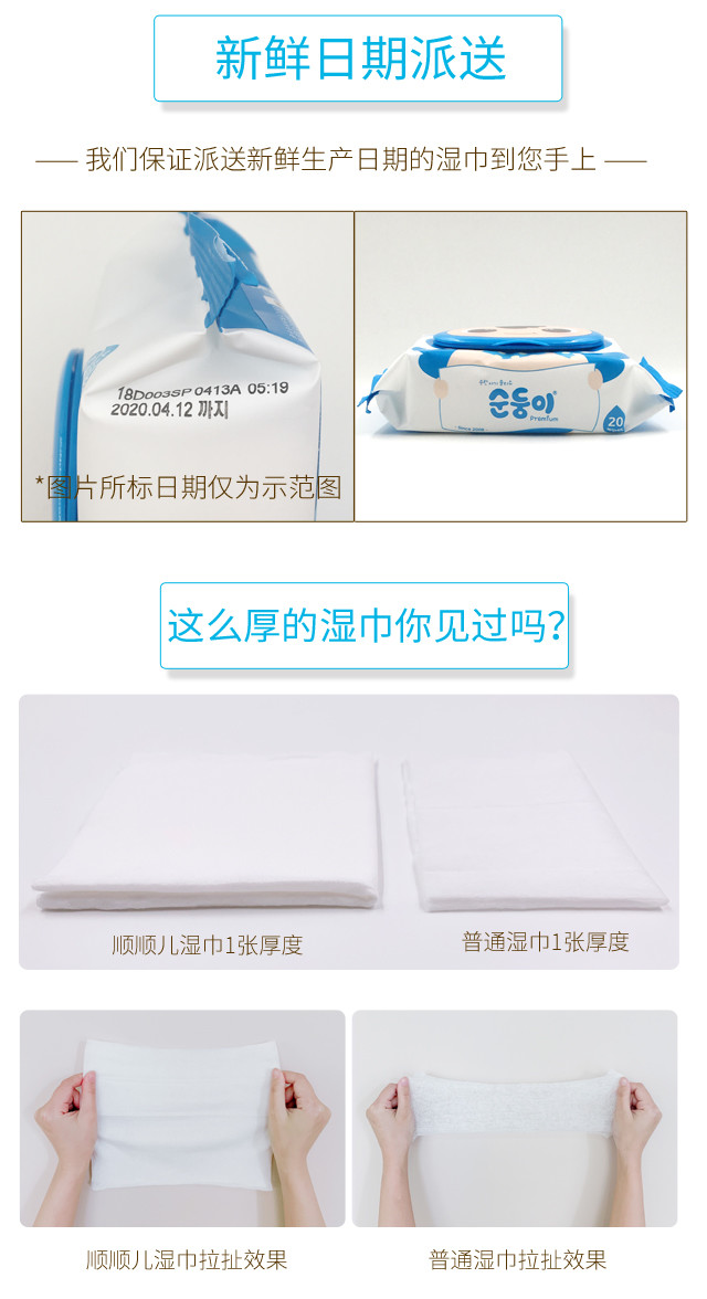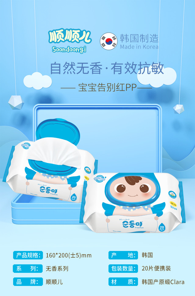 顺顺儿韩国原装进口婴儿湿巾蓝色无香便携20抽20包