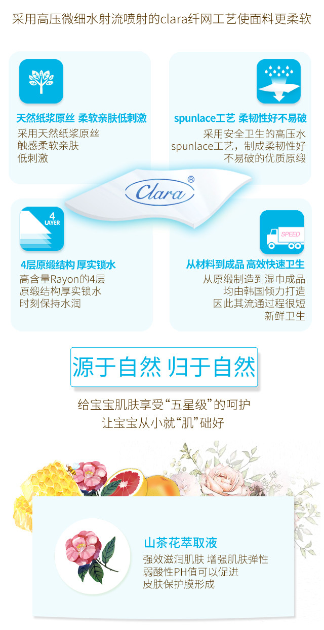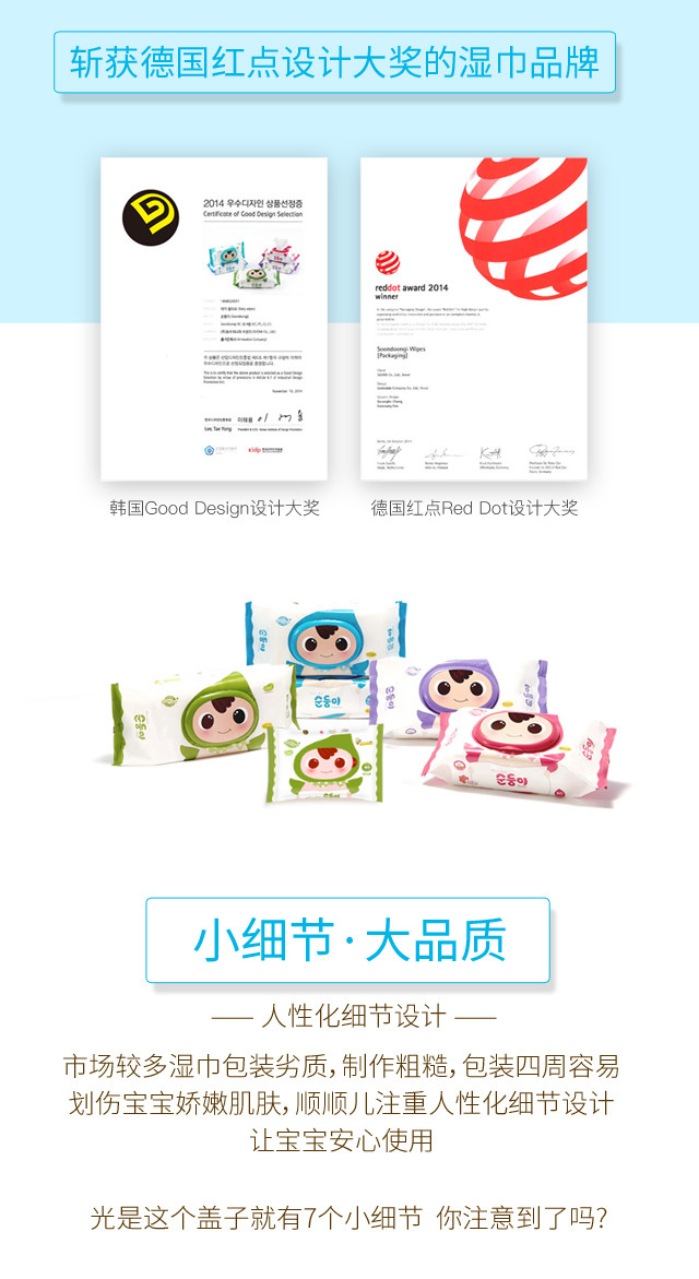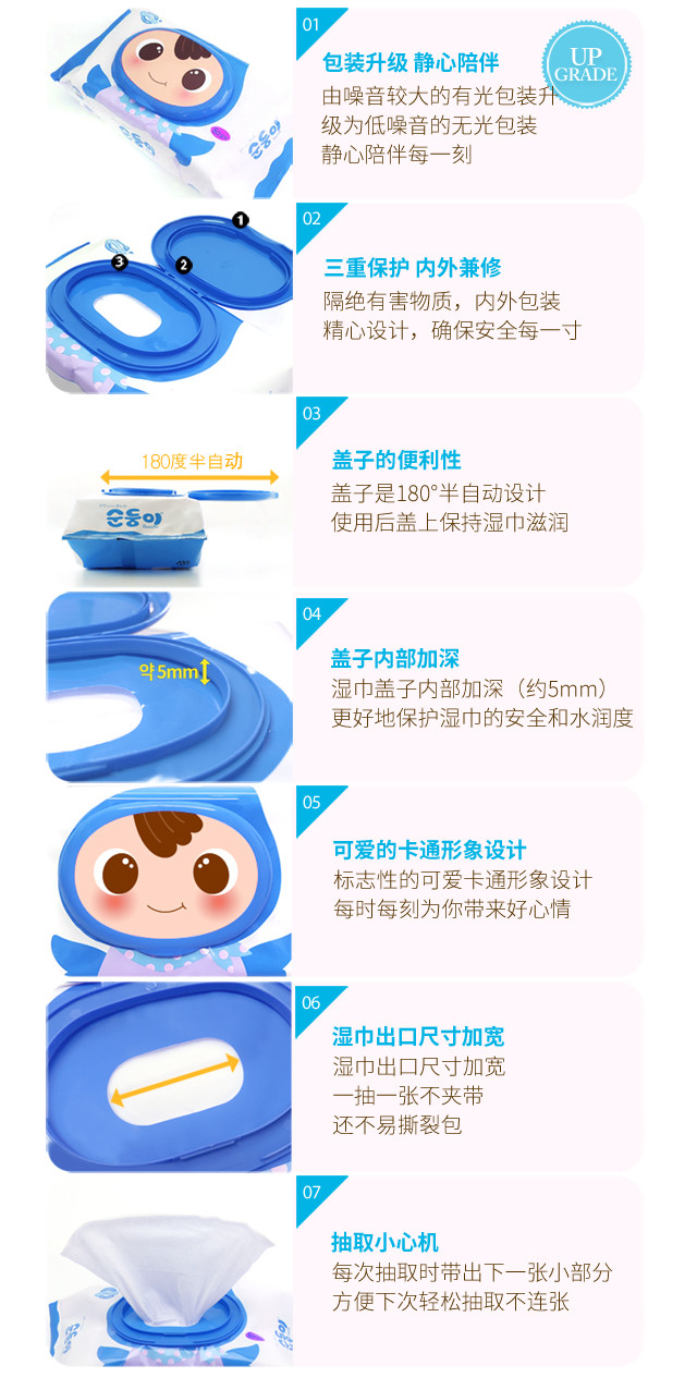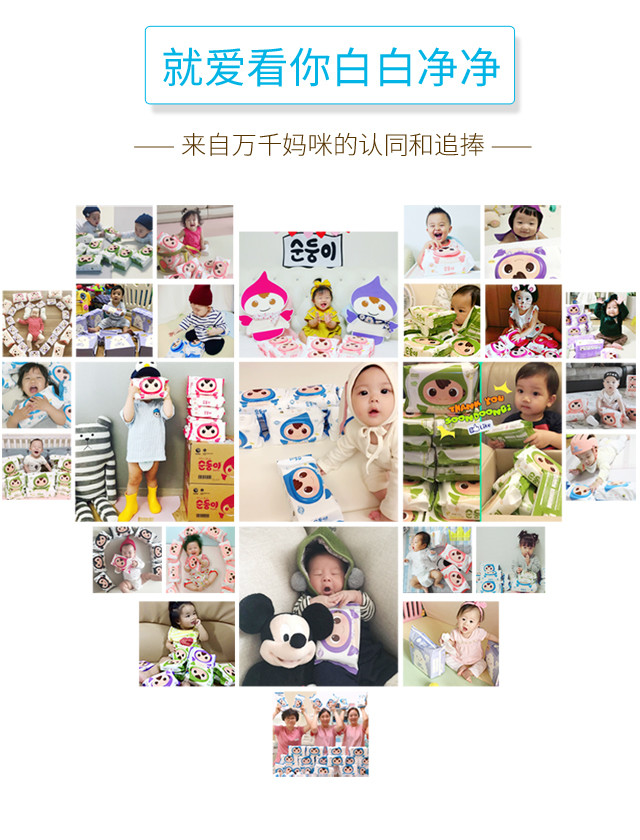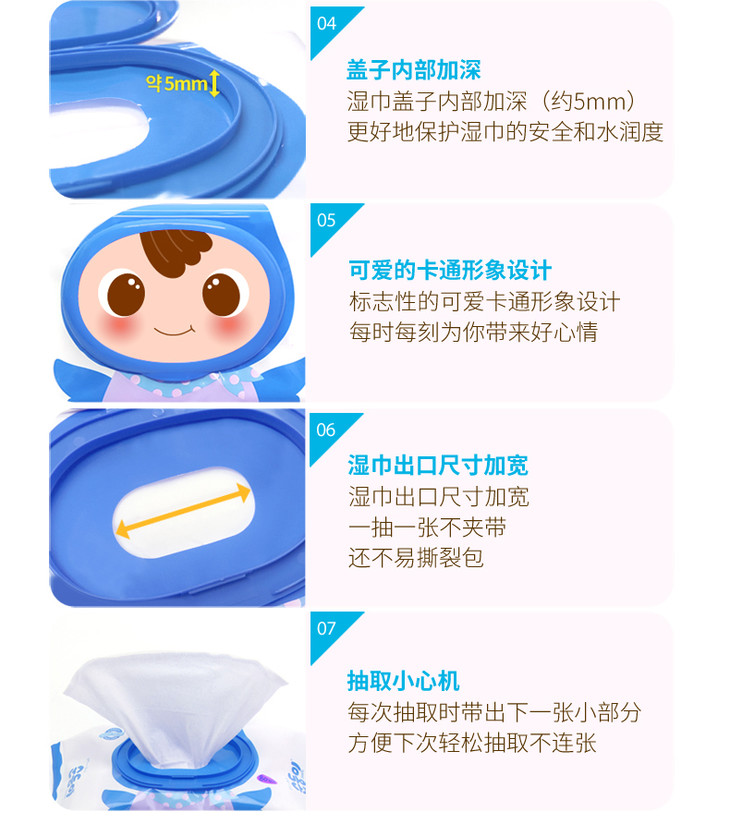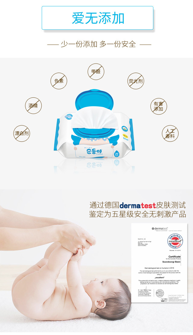 顺顺儿韩国原装进口婴儿湿巾蓝色无香便携20抽20包