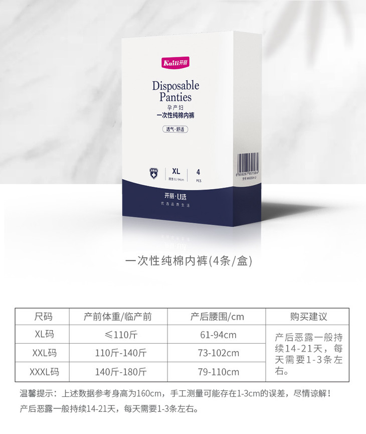 【开丽】纯棉一次性内裤4条装