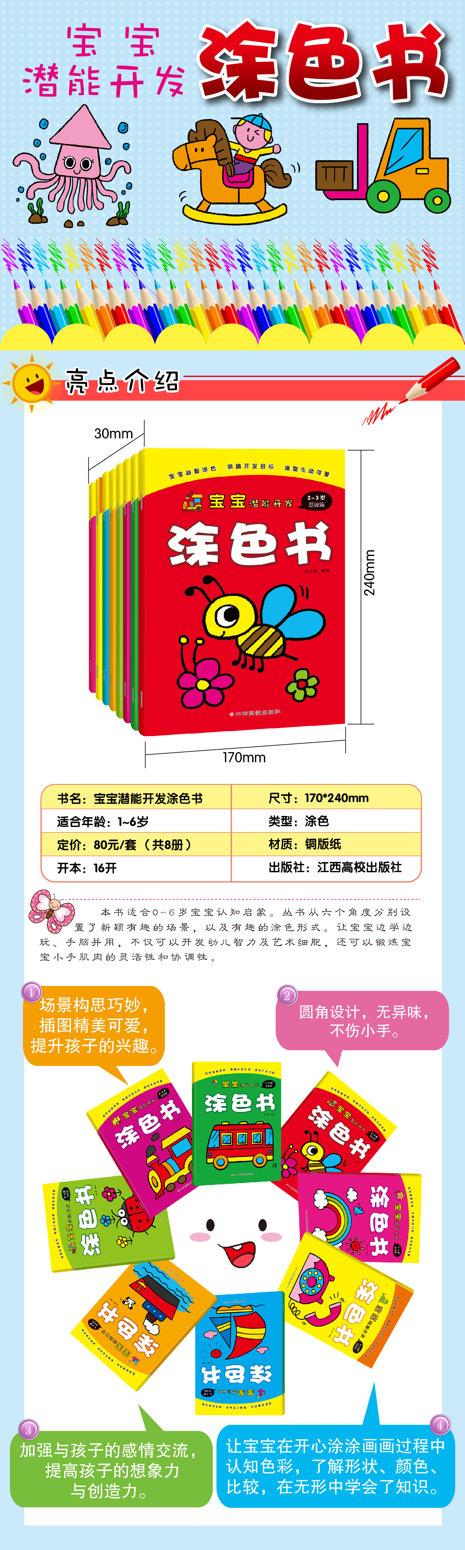 《宝宝潜能开发涂色书》 幼儿园学画画涂鸦绘画儿童图画册