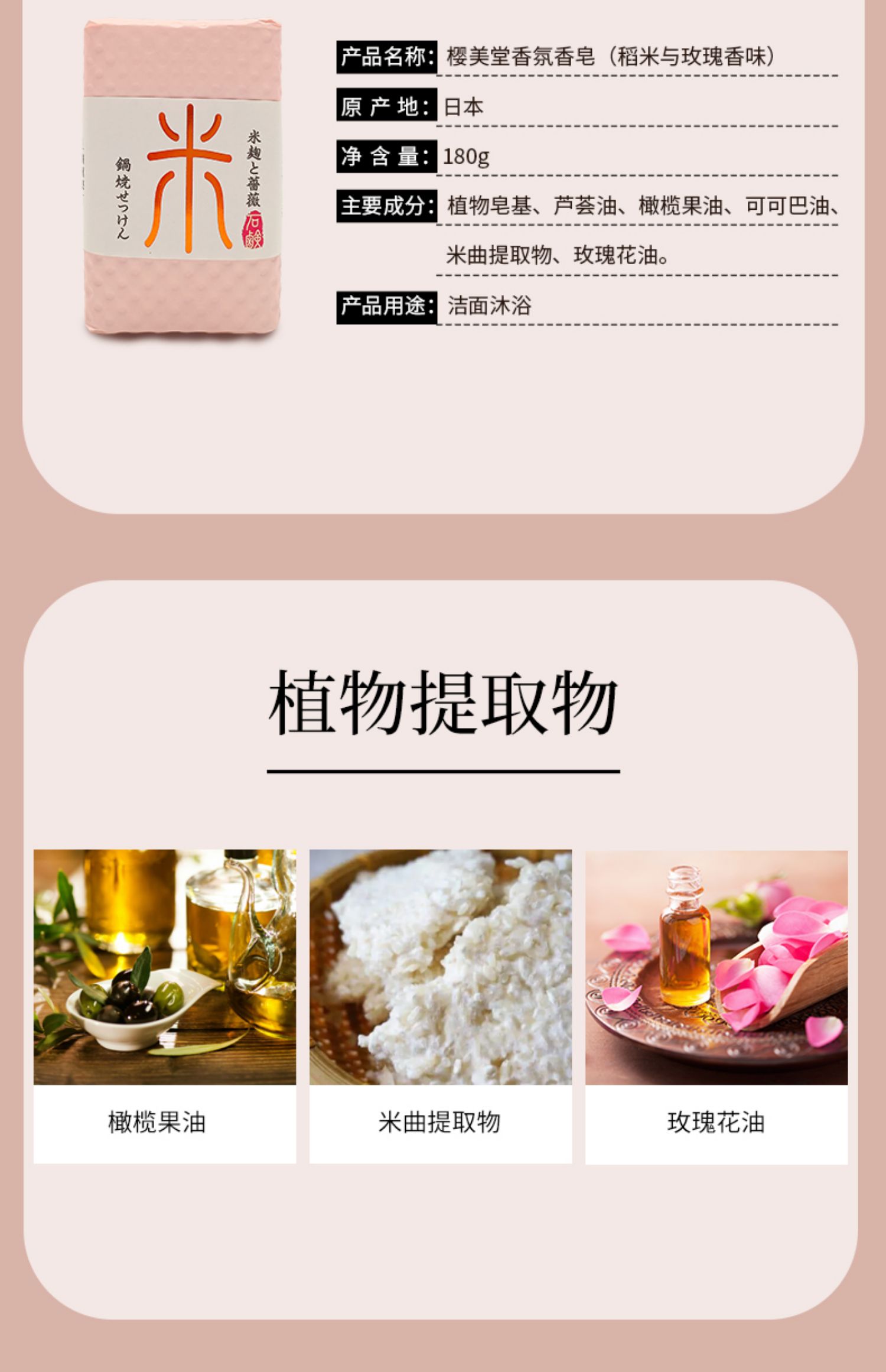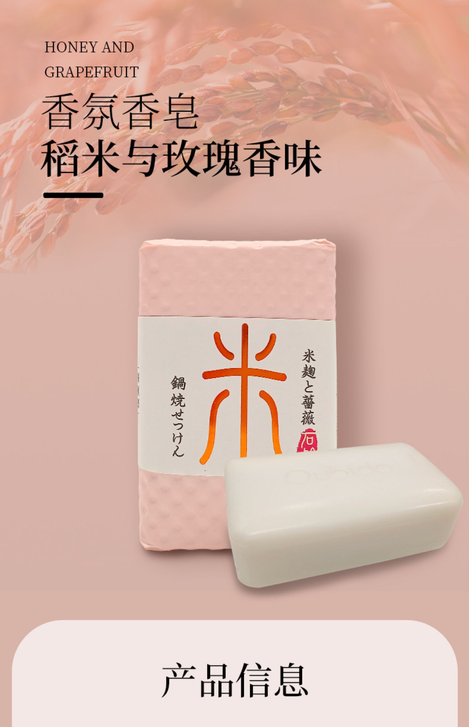 Oubido樱美堂香氛香皂180g 稻米与玫瑰香味/檀香与柑橘香味清洁肌肤 117921/117920
