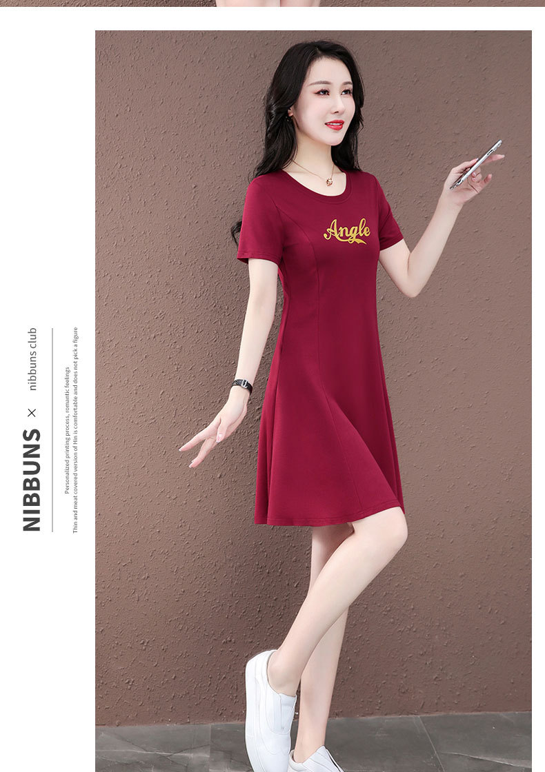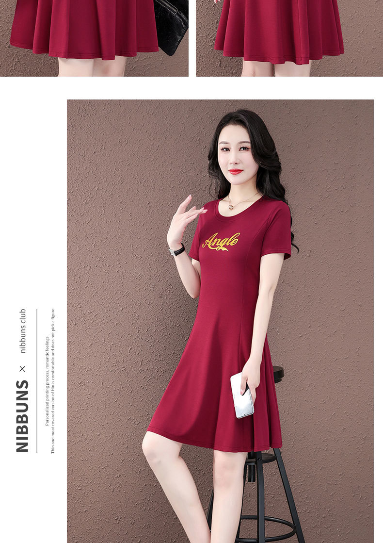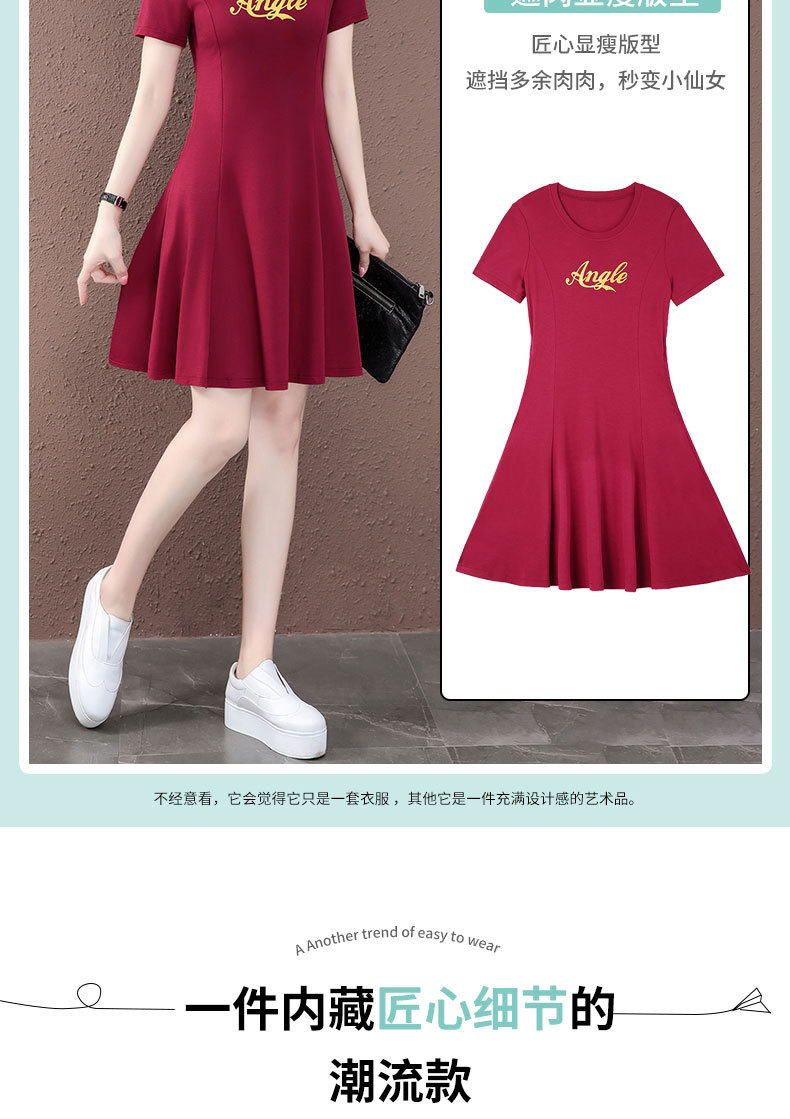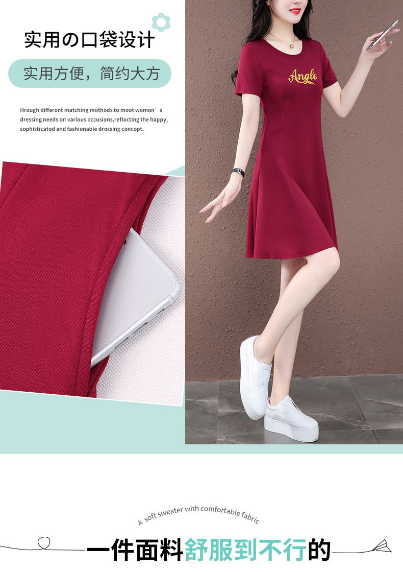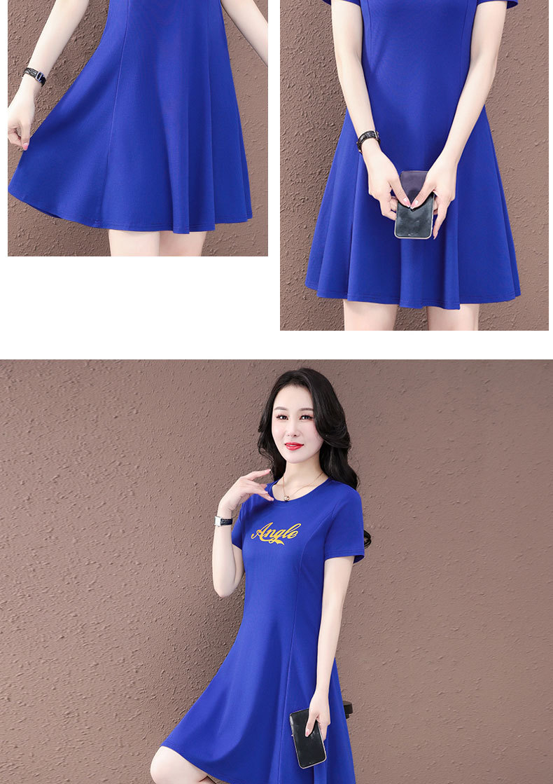 时尚显瘦休闲气质连衣裙,克莱因蓝短纯棉袖连衣裙TR-8166
