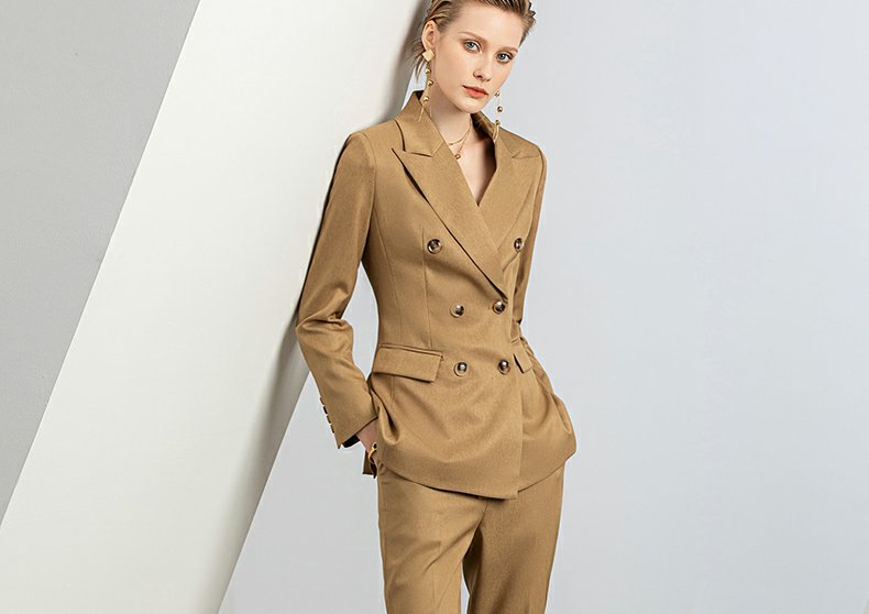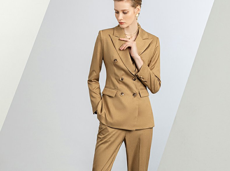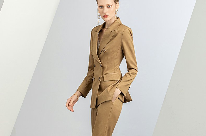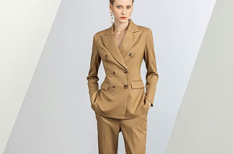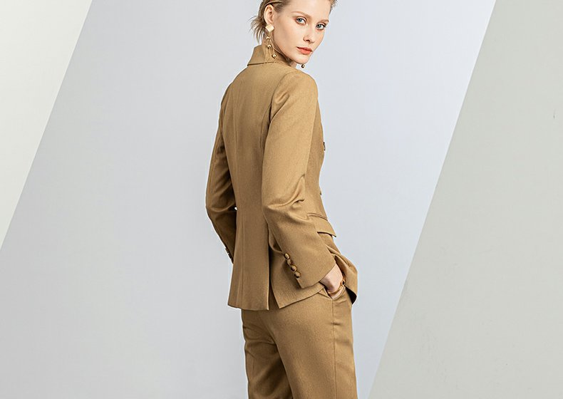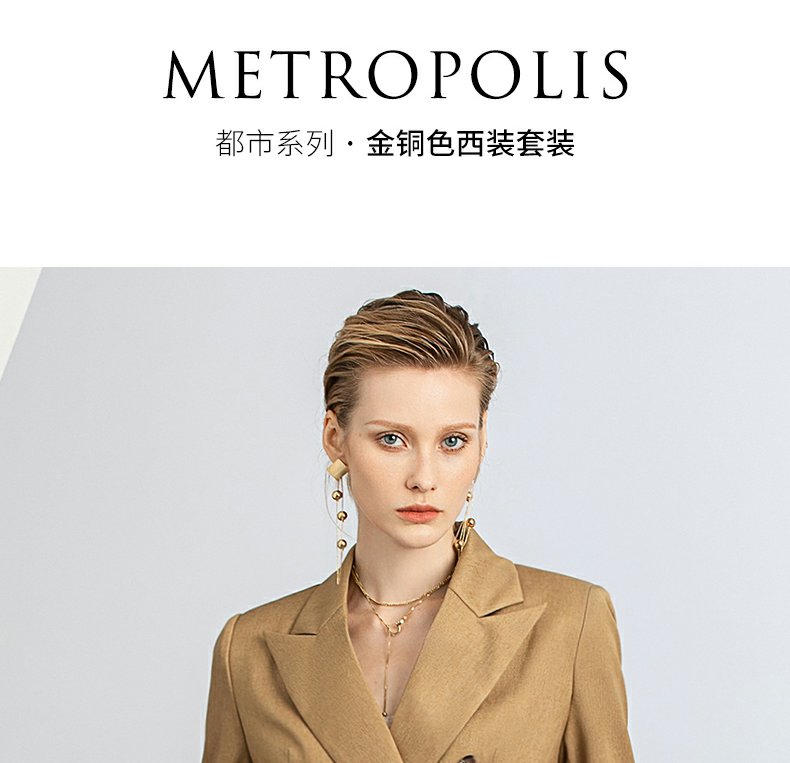 IWY/秋冬新款高级感金铜色西装套装女套裤领西服职业装女神范olC12303+P12303