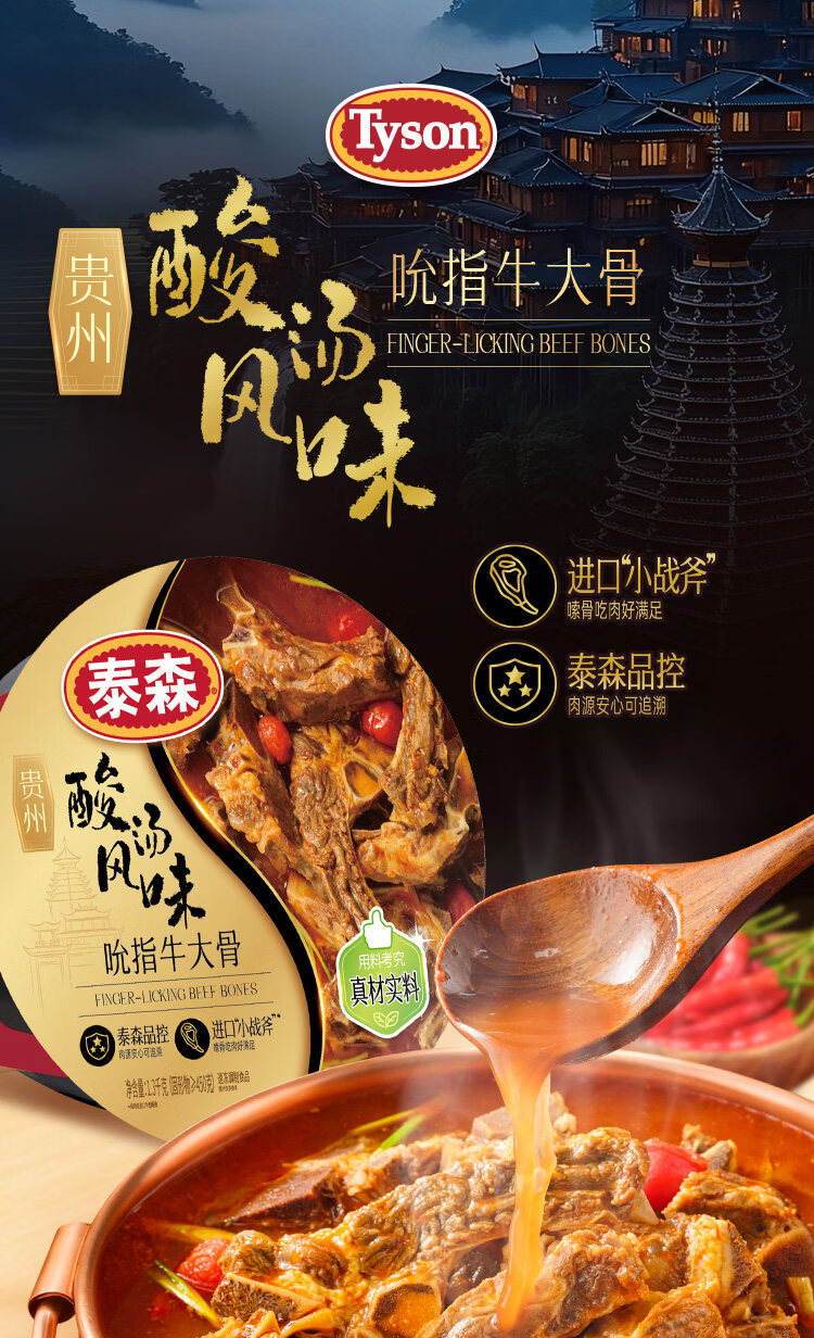 泰森酸汤味吮指牛大骨1.3kg/盒