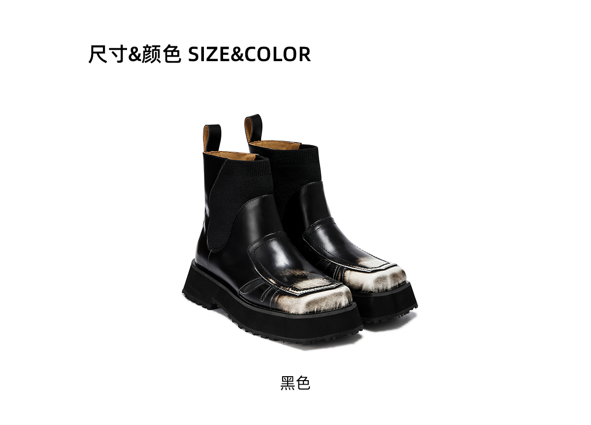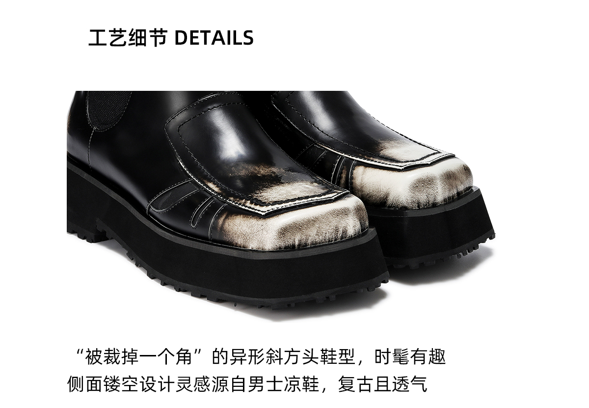 lost in echo 设计师品牌双层斜方头一脚蹬擦色短靴