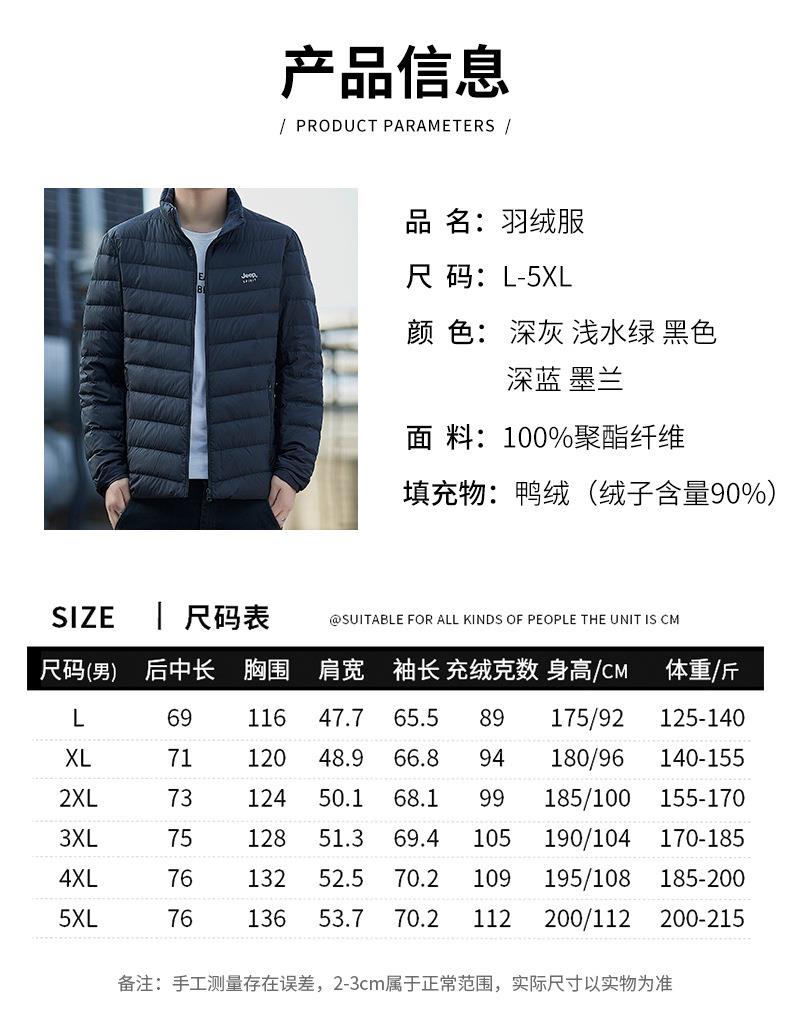 JEEP SPIRIT新国标羽绒服男士立领薄款轻便羽绒外套DJ7330