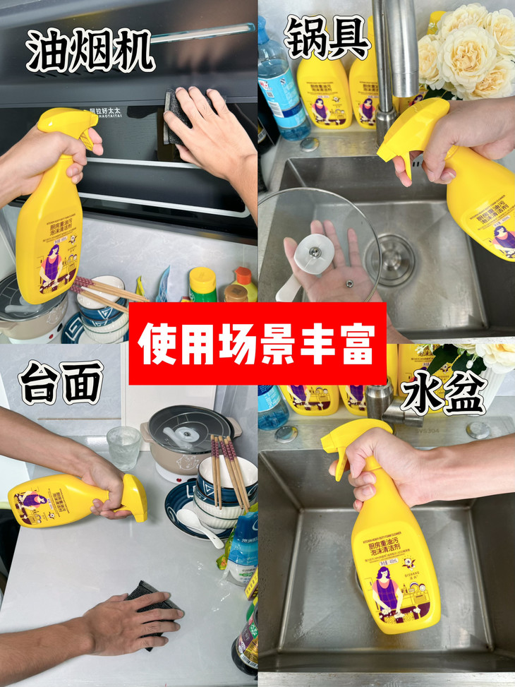 ⚡【1分钟强力渗透·泡沫超给力】 不像普通清洁剂流得哪儿都是🤦♀️ 它一喷就是绵密泡沫!紧紧扒住油污! 💦植物基溶油配方直接渗透油垢底层 “滋滋滋”把陈年老油都分解了 再厚重的油渍,静置1分钟,一擦就净! 油烟机网、燃气灶锈渍…光速消失!